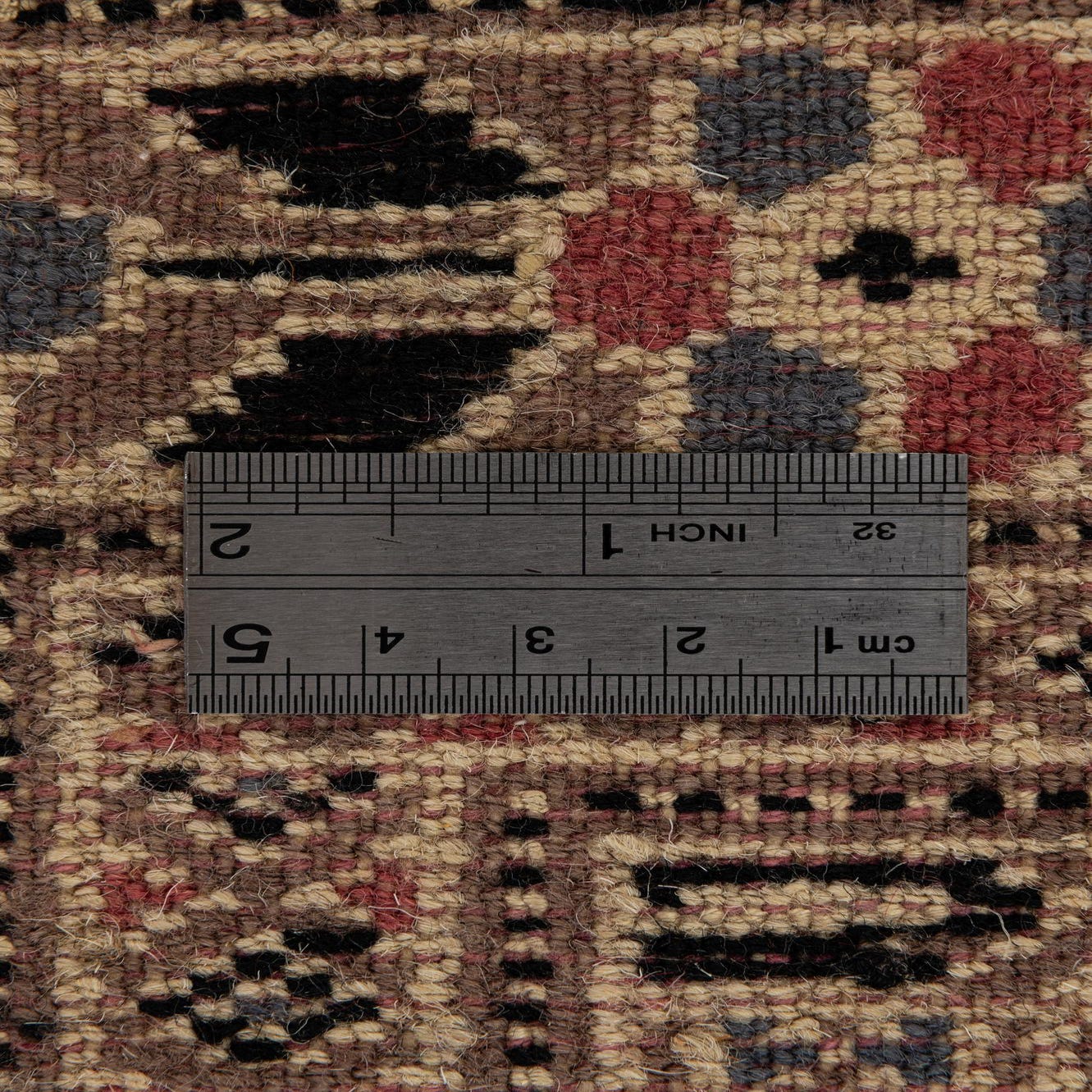 Primary color is Magenta. Colors in this rug include: Magenta, Beige, Black, Brown, Ivory, Light Brown, Gray.