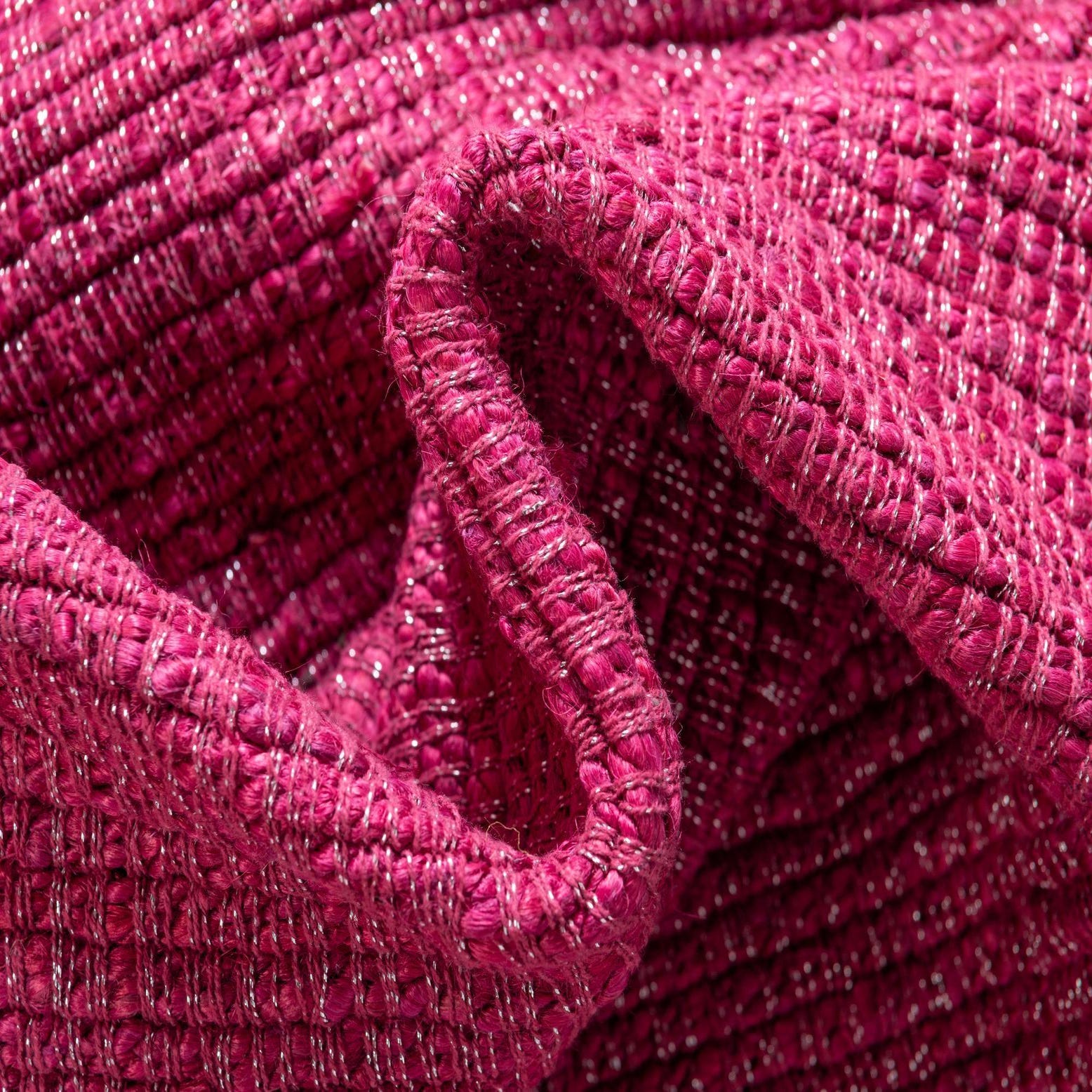 Primary color is Magenta. Colors in this rug include: Magenta, Silver.