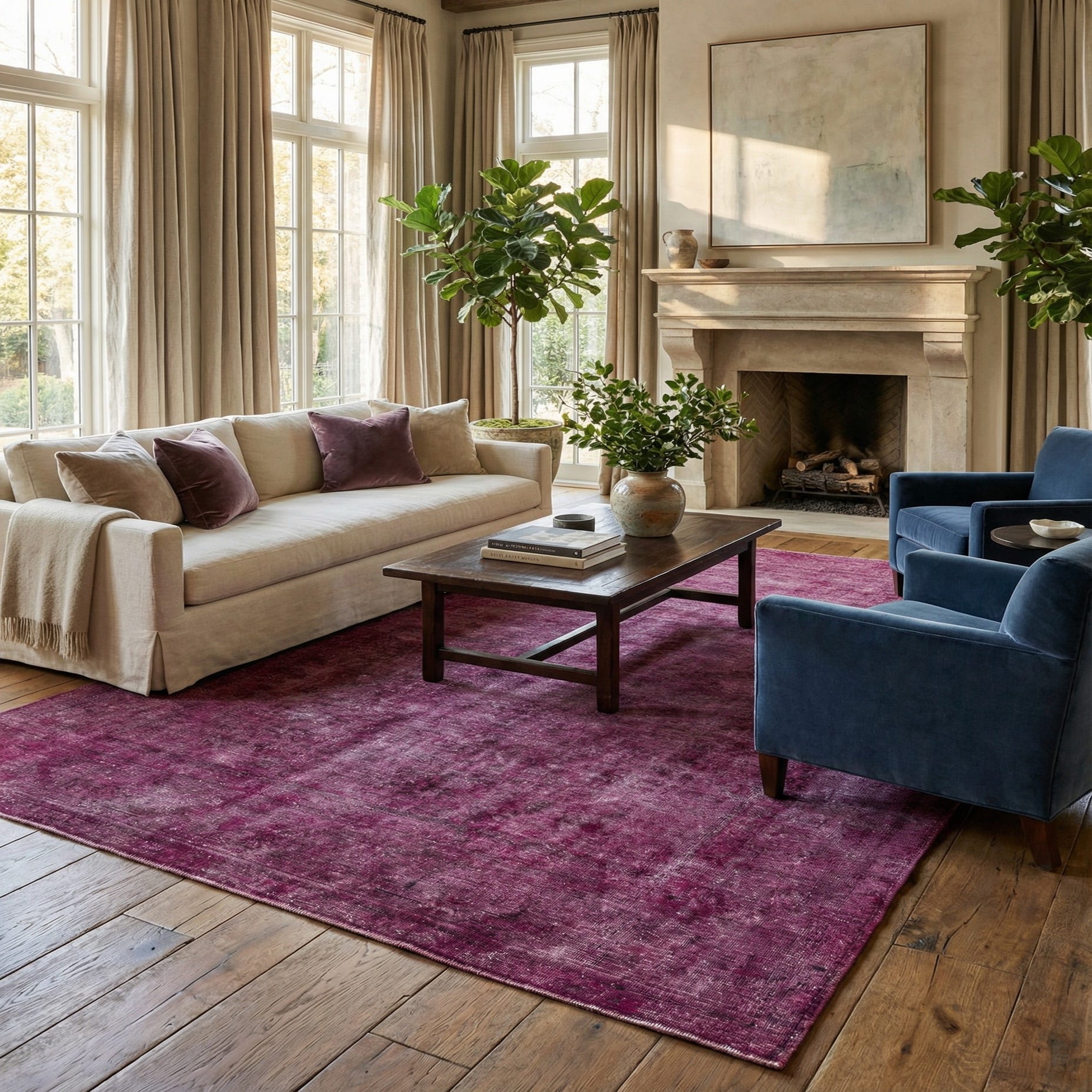 This Persian Ultra Vintage rug is an antique Persian Rug that has been washed, over-dyed, and then shaved down to a low pile. Look at the detail pictures to fully appreciate the uniqueness of this piece.