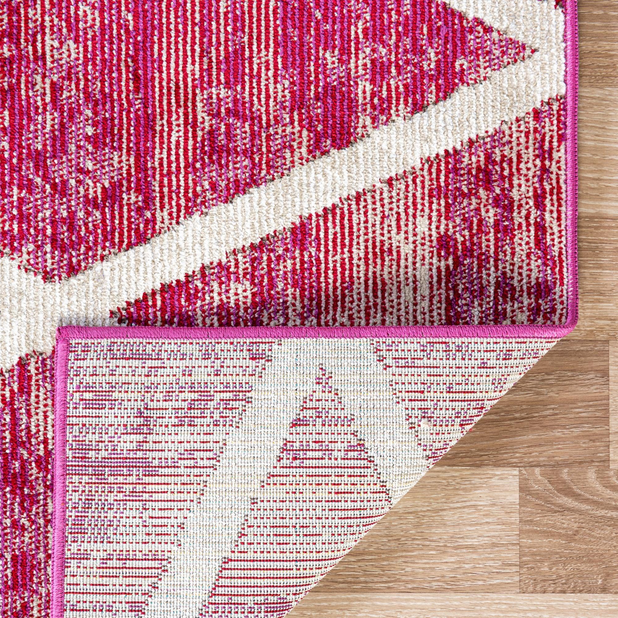 Primary color is Magenta. Colors in this rug include: Magenta, Brown, Ivory, Pink, Beige.