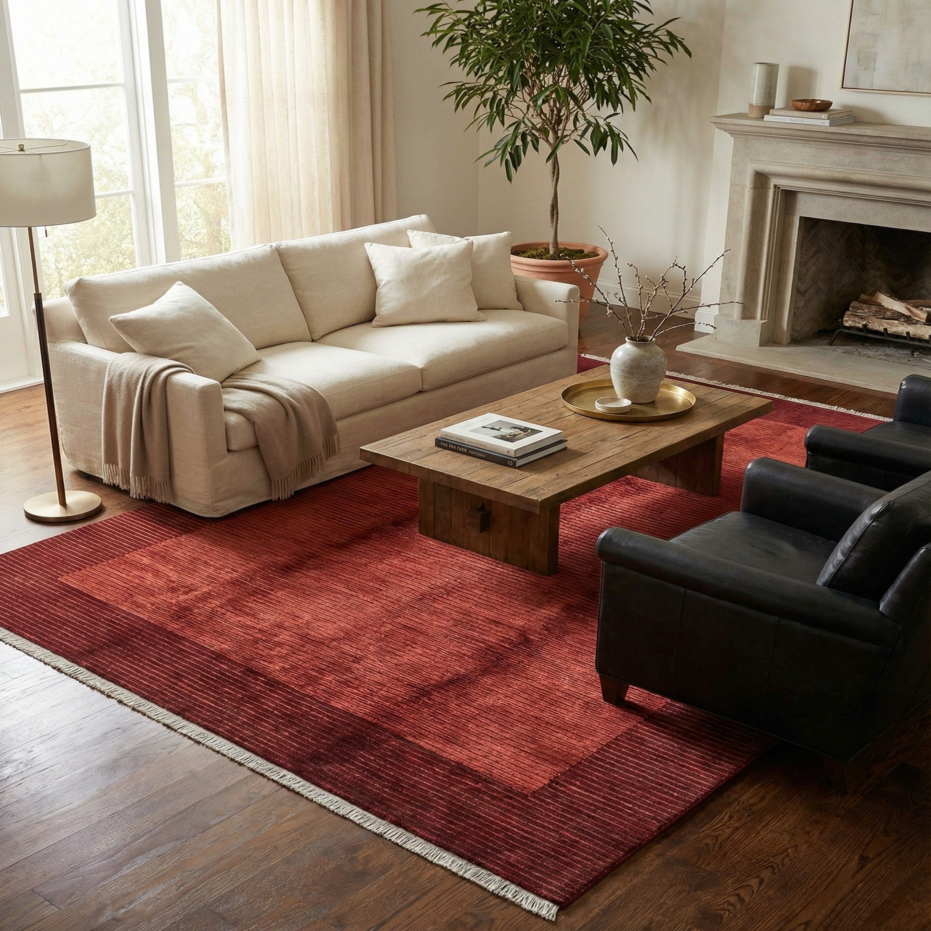 Primary color is Maroon. Colors in this rug include: Maroon, Red.