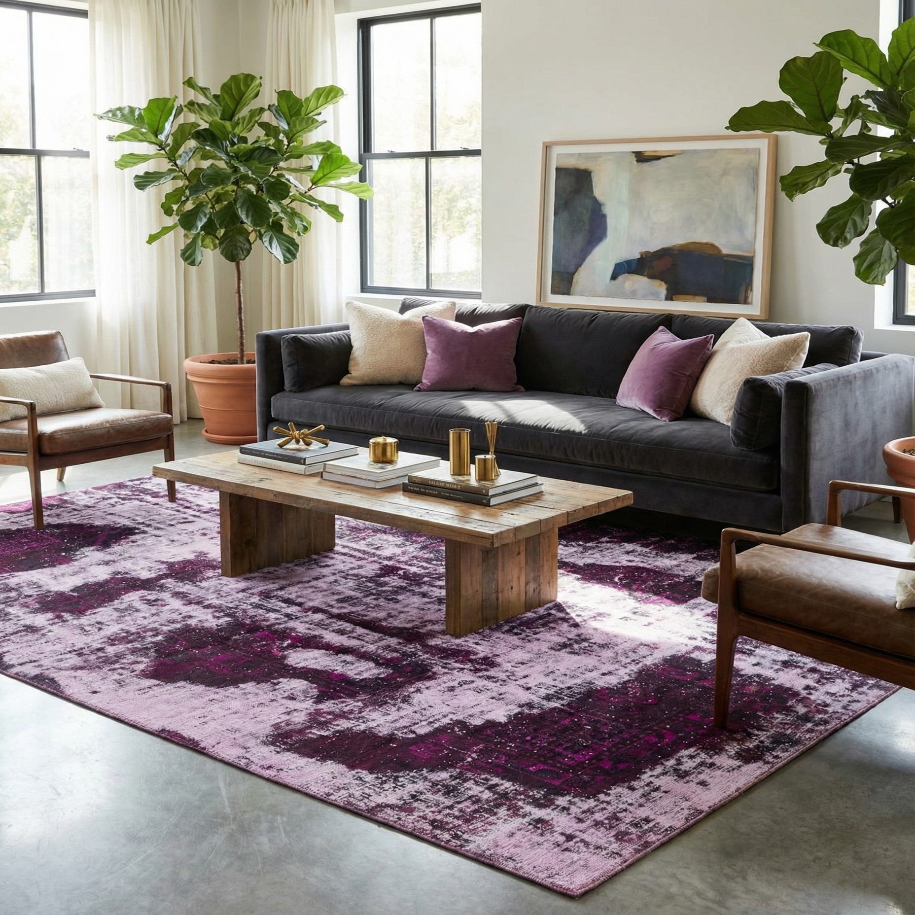 This Persian Ultra Vintage rug is an antique Persian Rug that has been washed, over-dyed, and then shaved down to a low pile. Look at the detail pictures to fully appreciate the uniqueness of this piece.