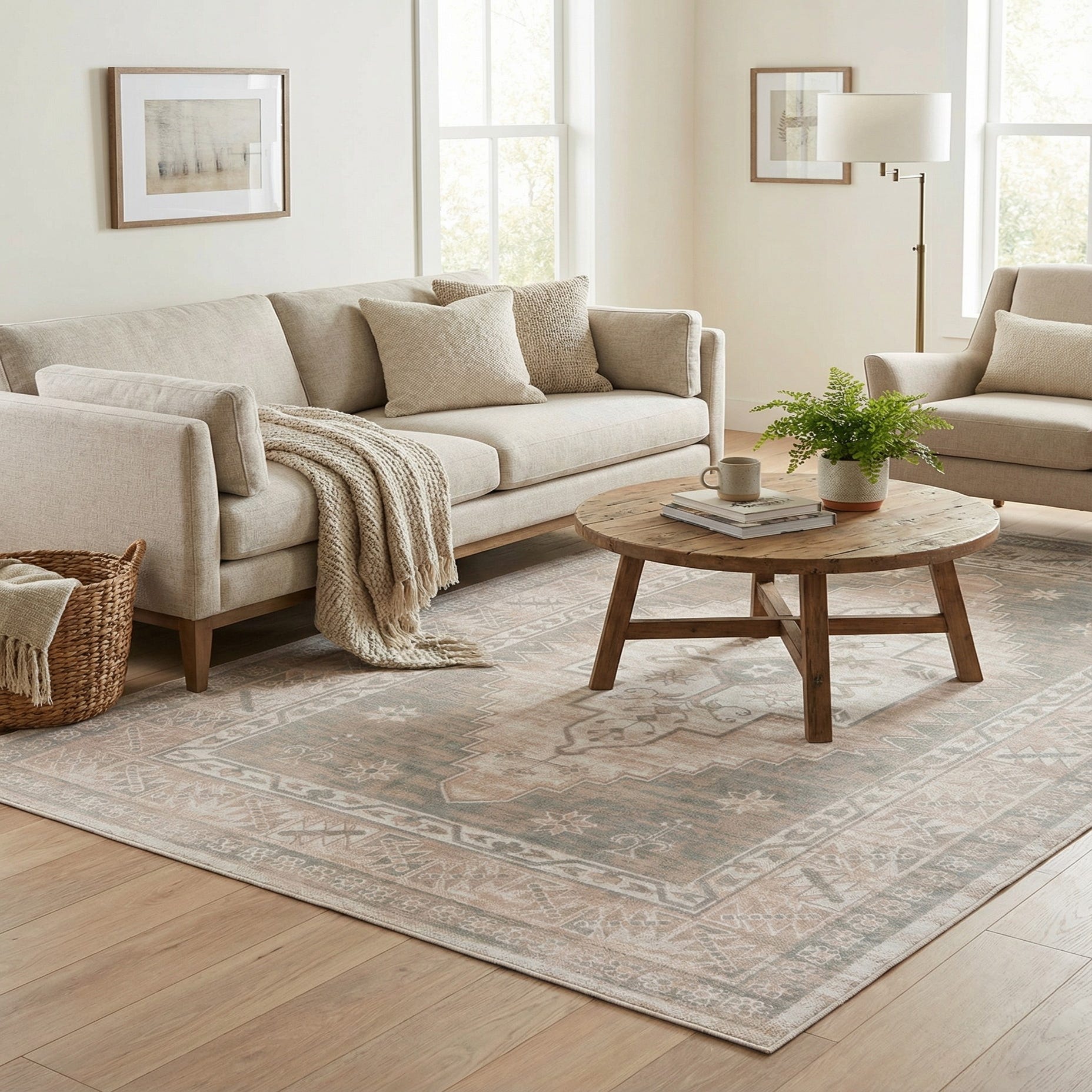 Primary color is Mink. Colors in this rug include: Mink, Ivory, Light Brown, Gray.