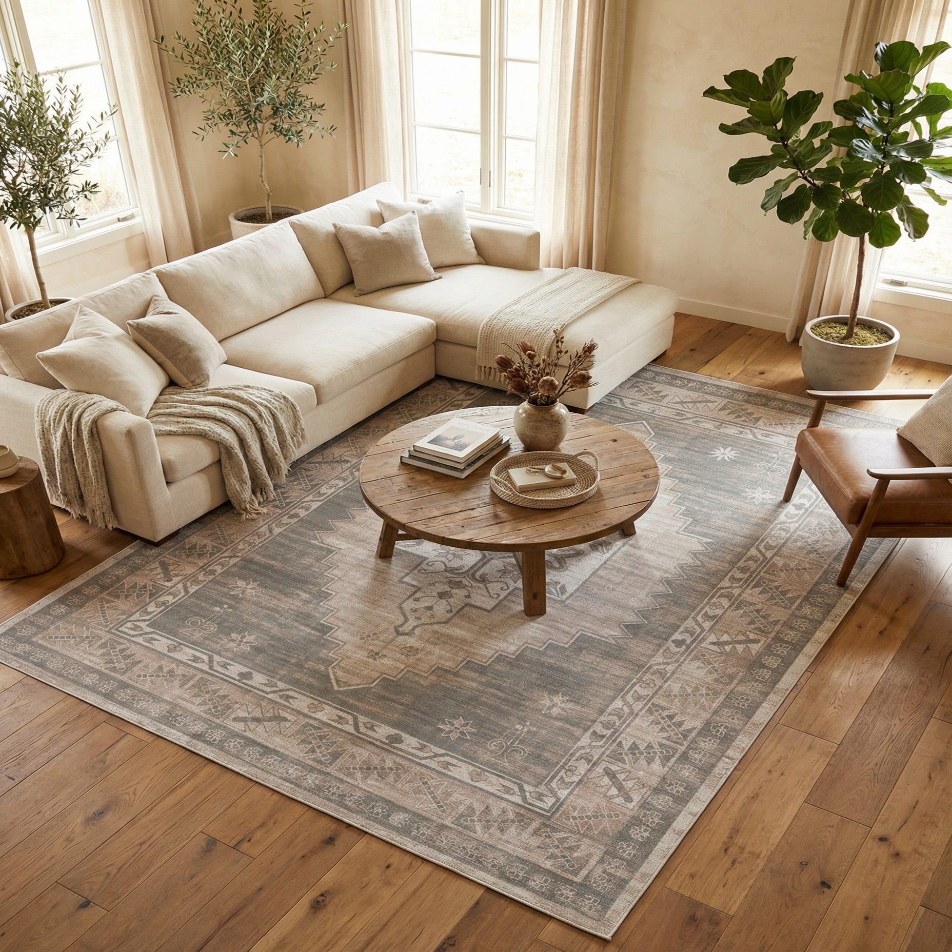 Primary color is Mink. Colors in this rug include: Mink, Ivory, Light Brown.