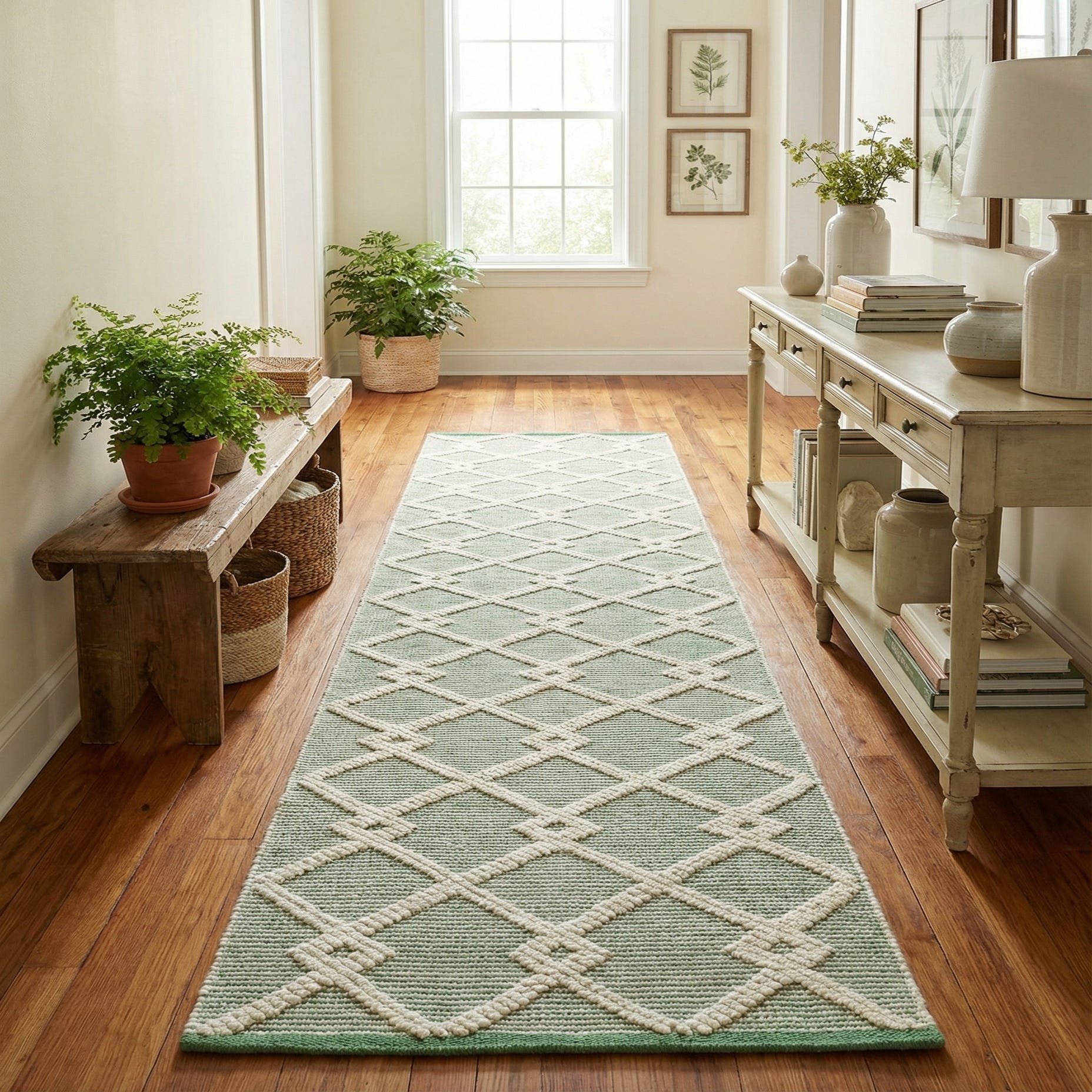 Primary color is Mint Green. Colors in this rug include: Mint Green, Ivory.