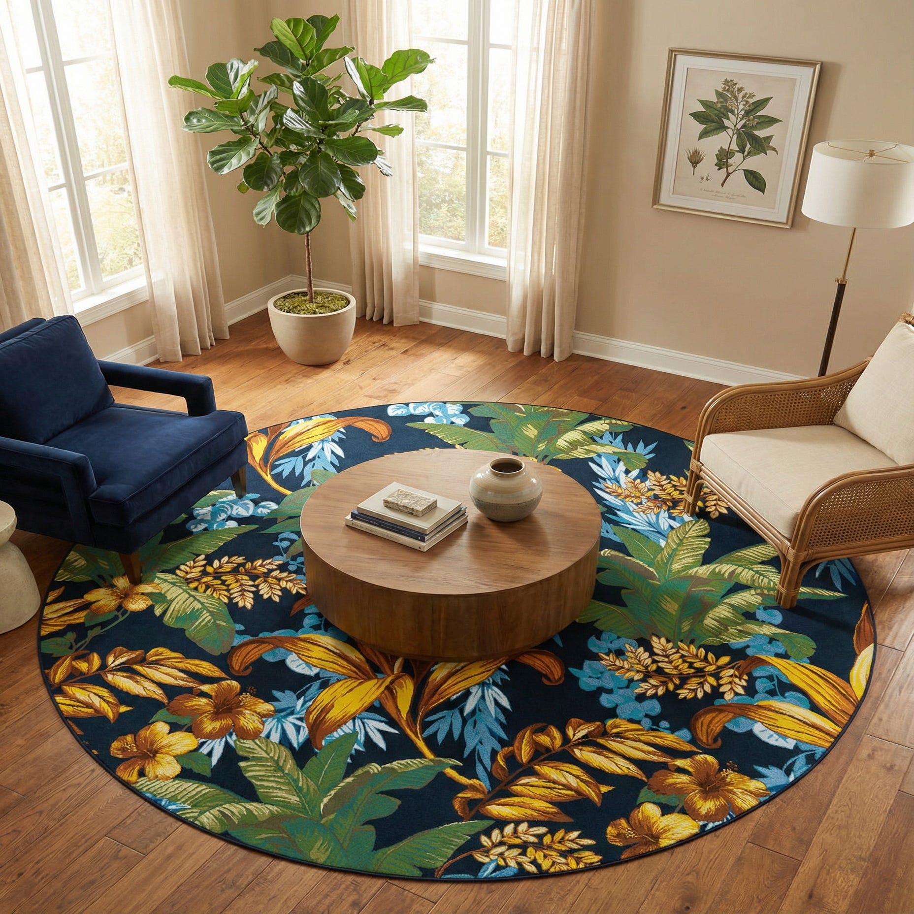 Primary image 10' x 10'  Washable Botanical Indoor / Outdoor Round Rug