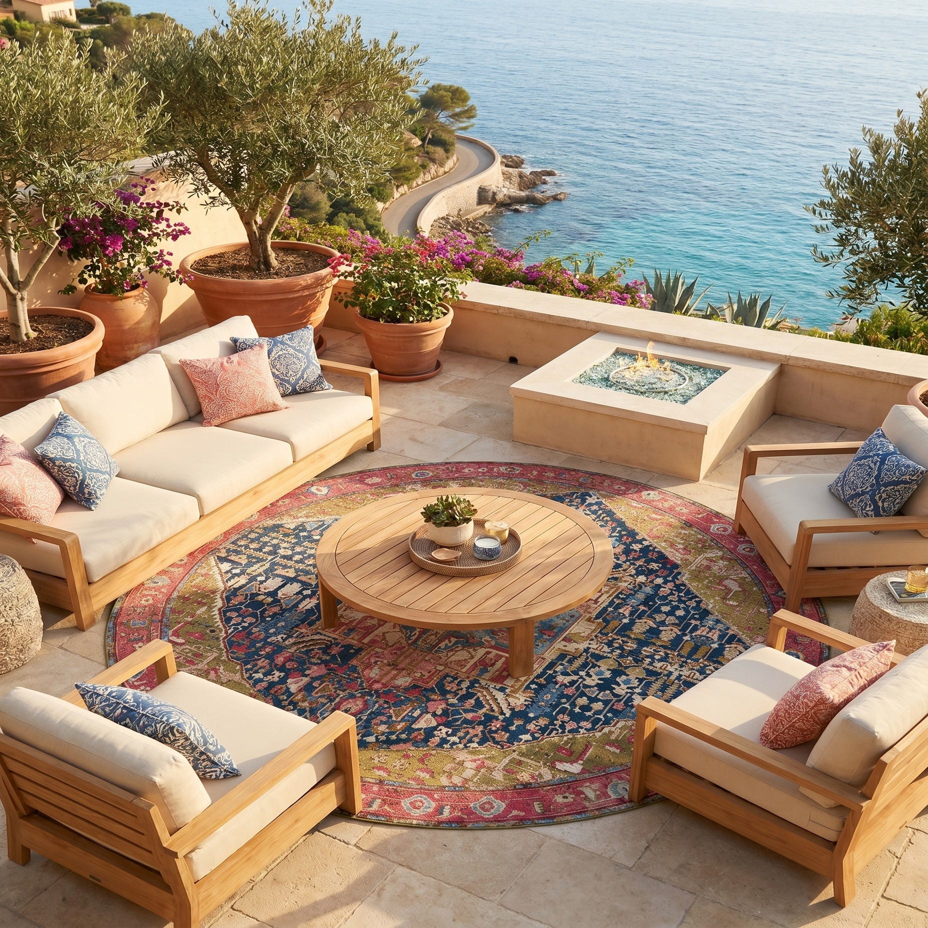 10' x 10' Easy-Clean Traditional Indoor / Outdoor Round Rug