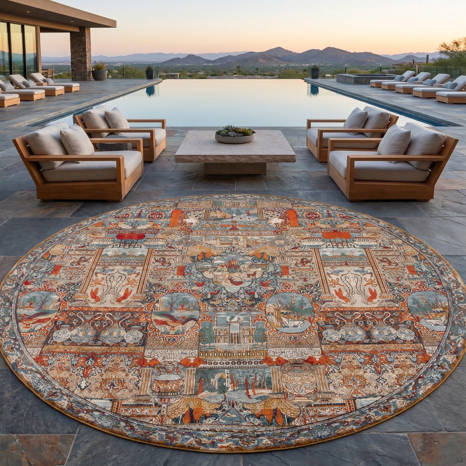 10' x 10' Easy-Clean Traditional Indoor / Outdoor Round Rug