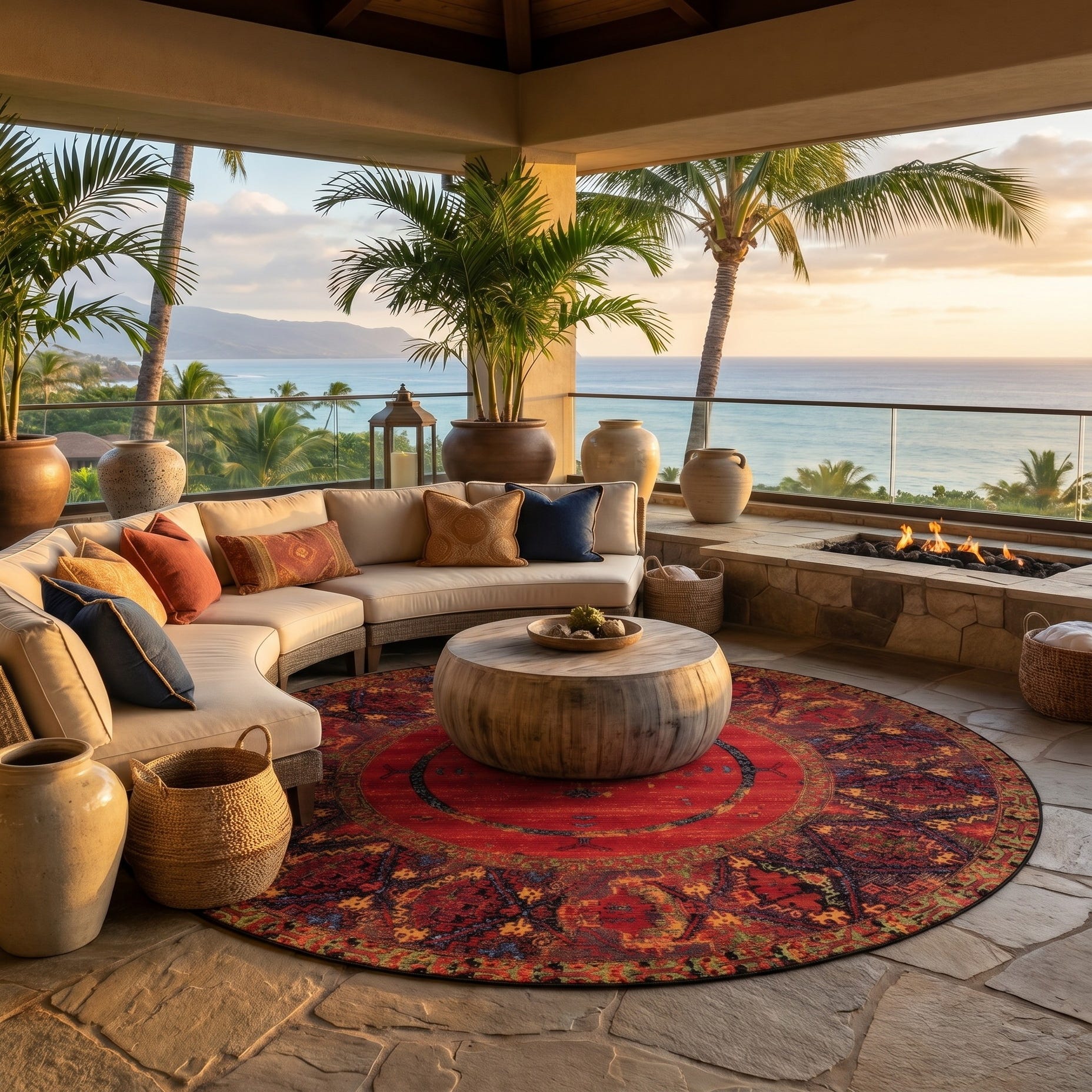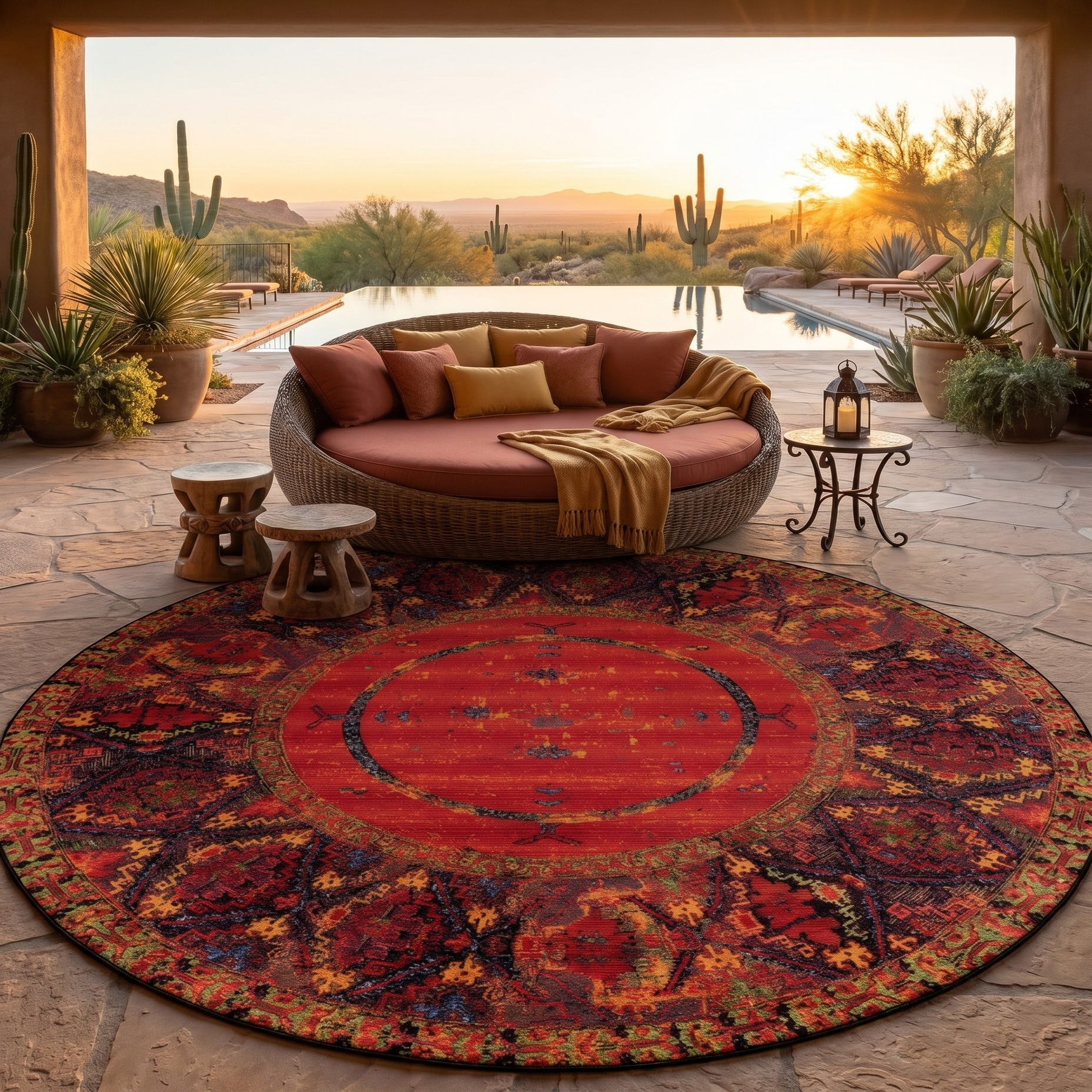 10' x 10' Easy-Clean Tribal Indoor / Outdoor Round Rug
