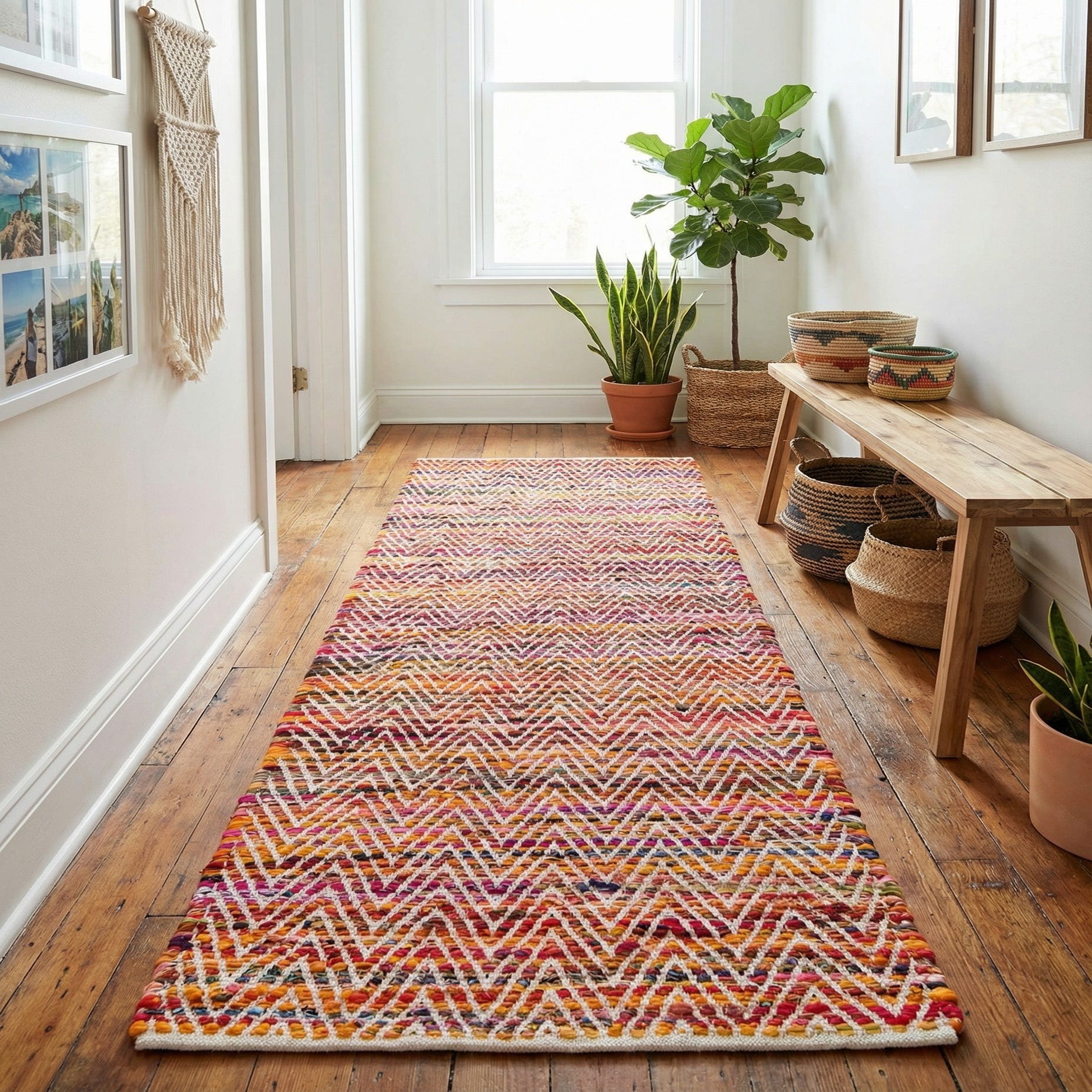 Detail image of 2' 7 x 10'  Hand Woven Chindi Chevron Runner Rug