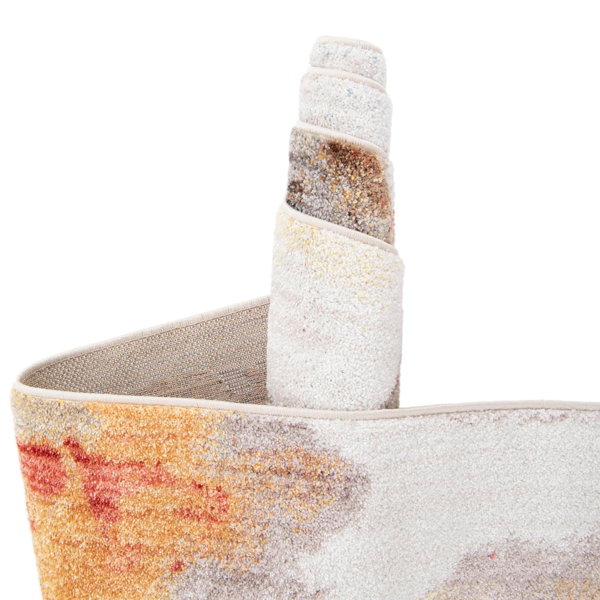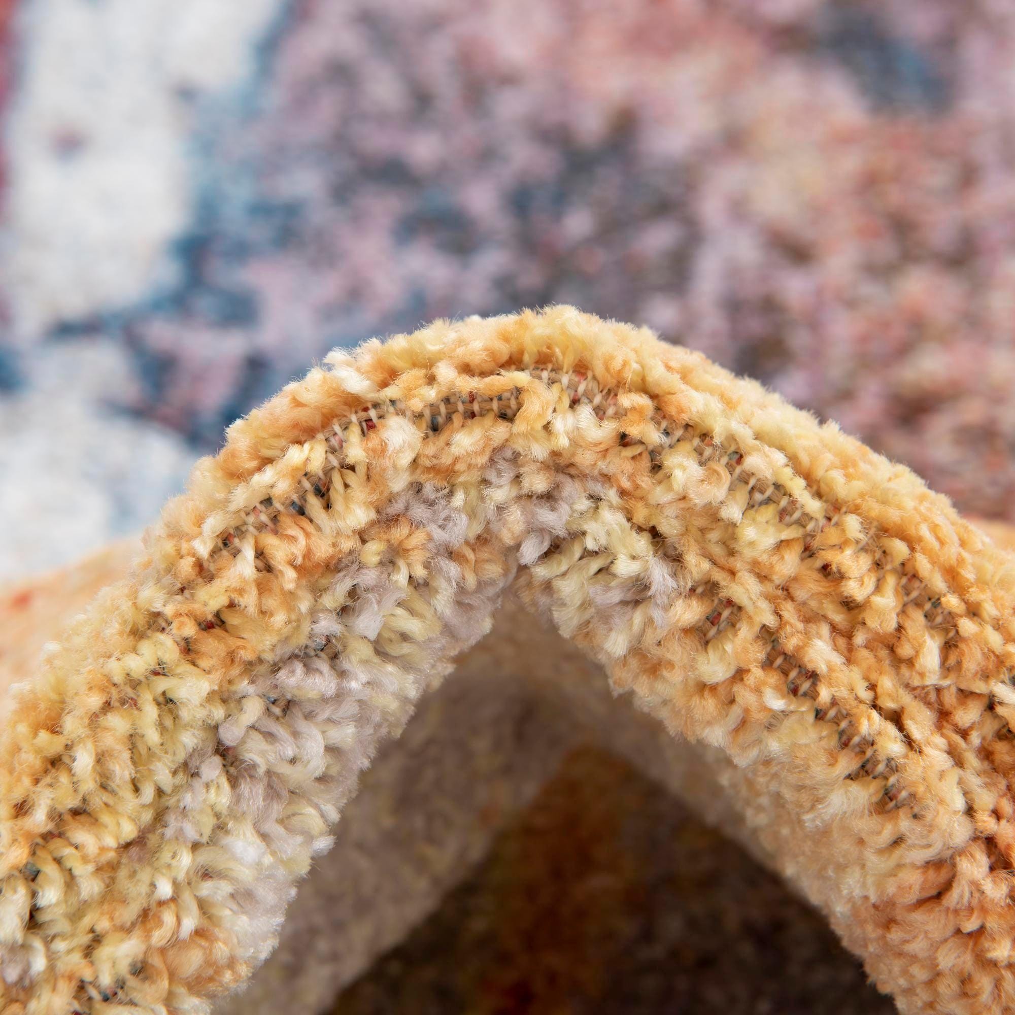 Primary color is Multi. Colors in this rug include: Multi, Blue, Brown, Ivory, Orange, Peach, Rust Red, Pink.