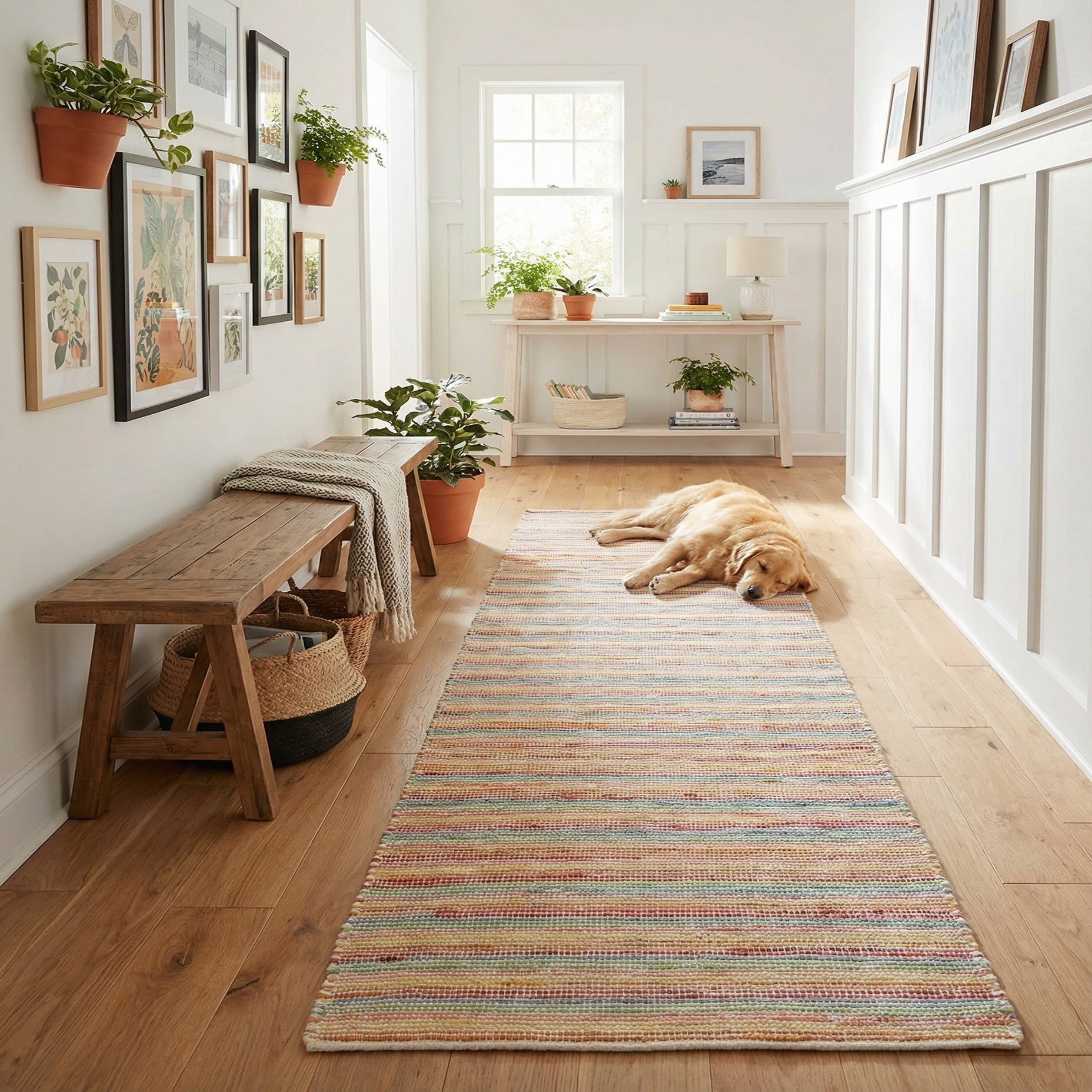 2' 7 x 10' Hand Woven Happy Rugs Rainbow Weave Runner