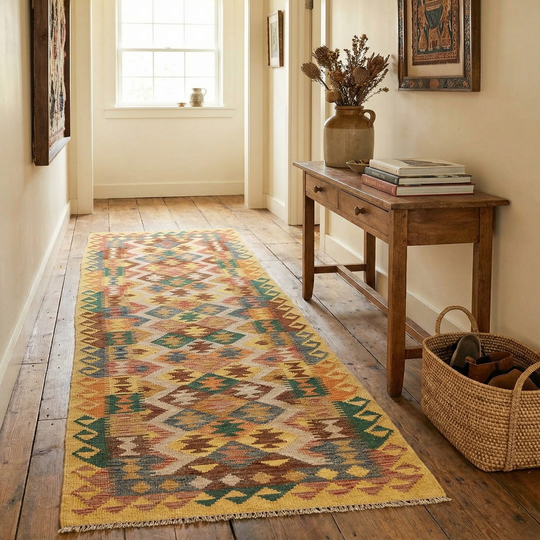 Primary image 2' 9 x 9' 7  Hand Woven Kilim Maymana Wool Runner Rug