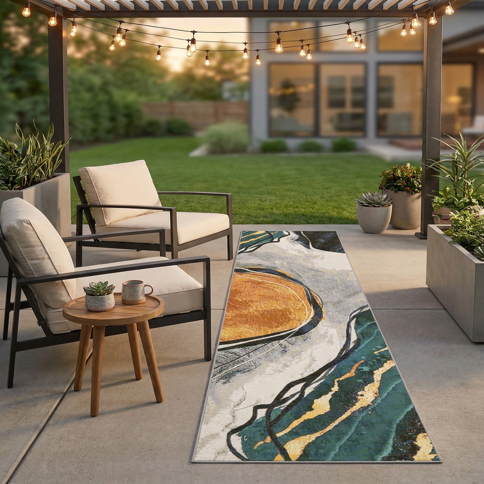 2' 7 x 10' Washable Modern Indoor / Outdoor Runner Rug