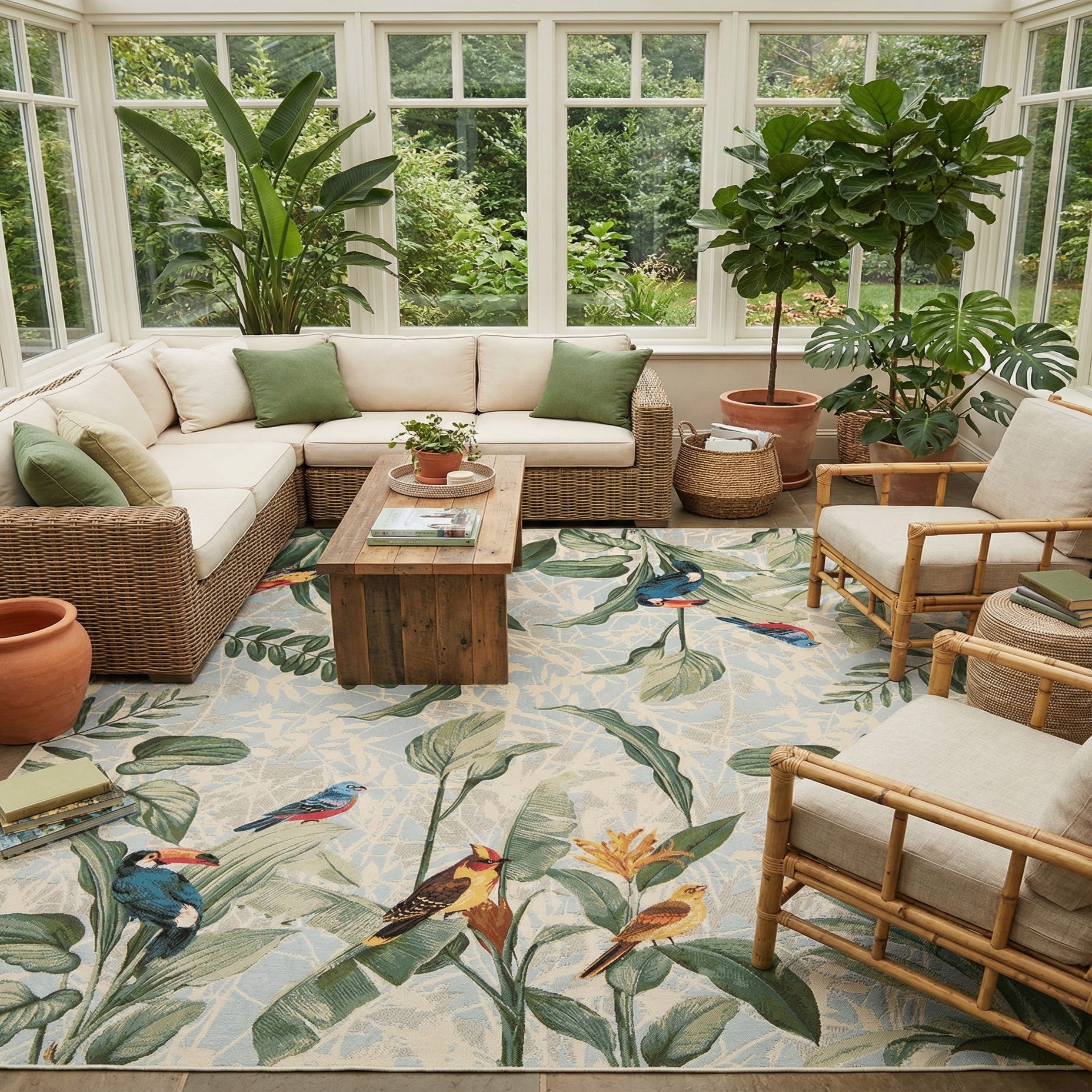 10' x 10' Washable Botanical Indoor / Outdoor Square Rug