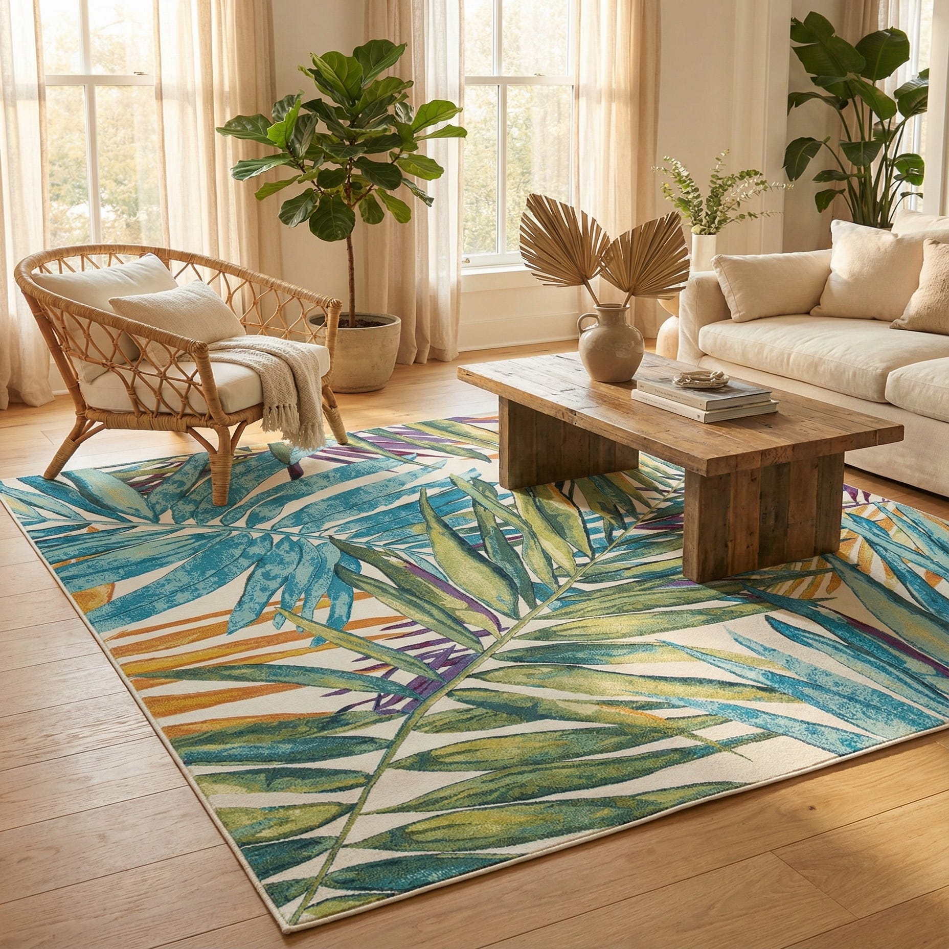 10' x 10' Washable Botanical Indoor / Outdoor Square Rug
