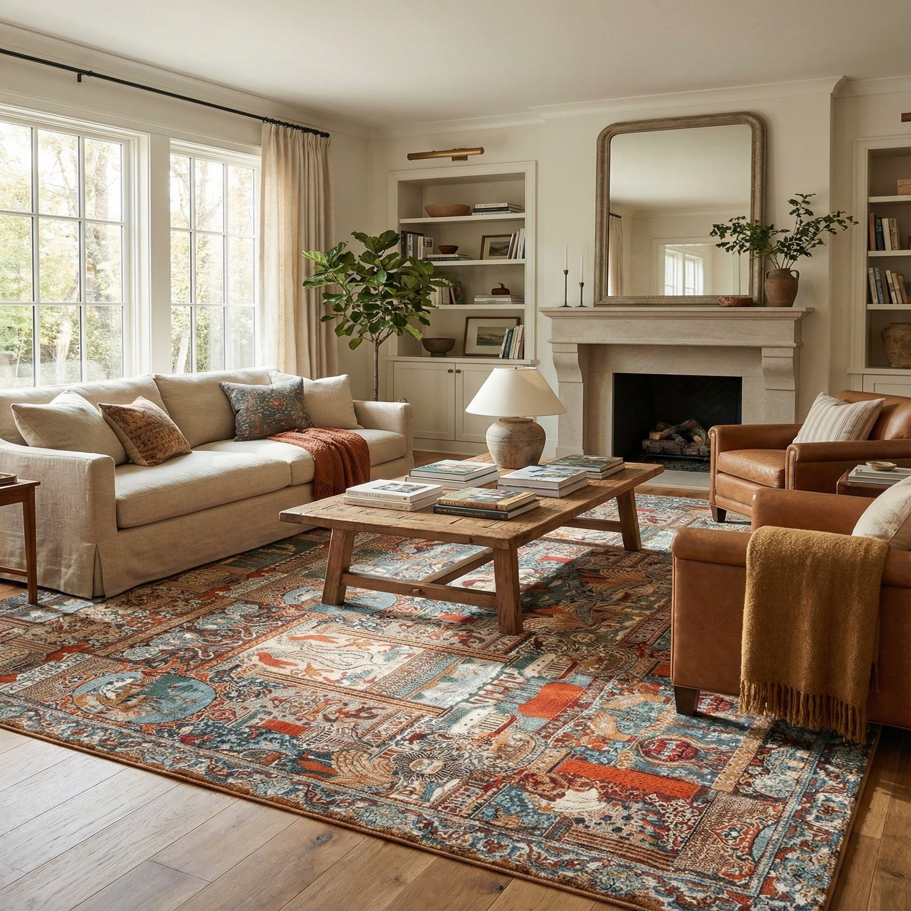 Primary color is Multi. Colors in this rug include: Multi, Beige, Black, Blue, Brown, Gray, Green, Ivory, Navy Blue, Red.