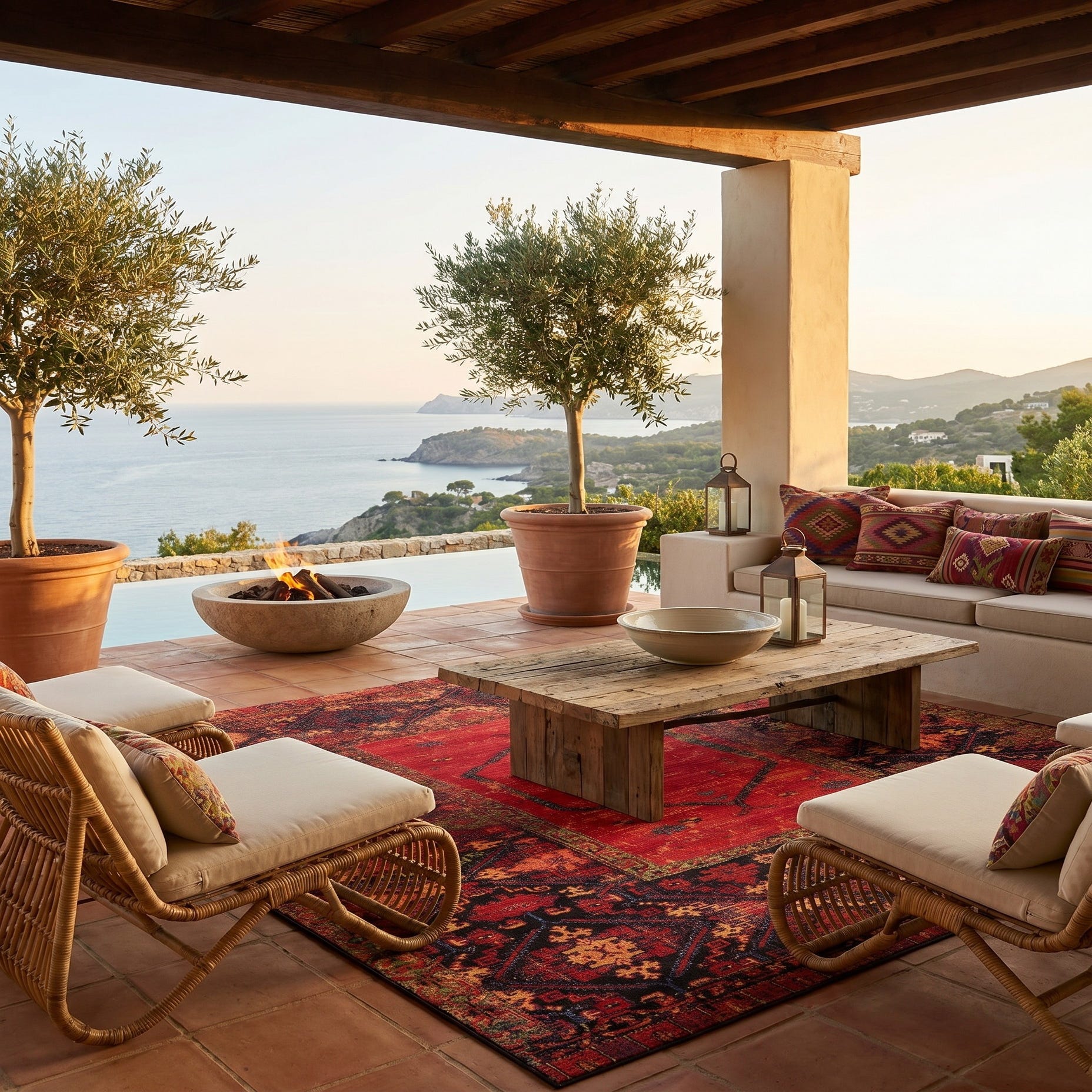 10' x 10' Easy-Clean Tribal Indoor / Outdoor Square Rug
