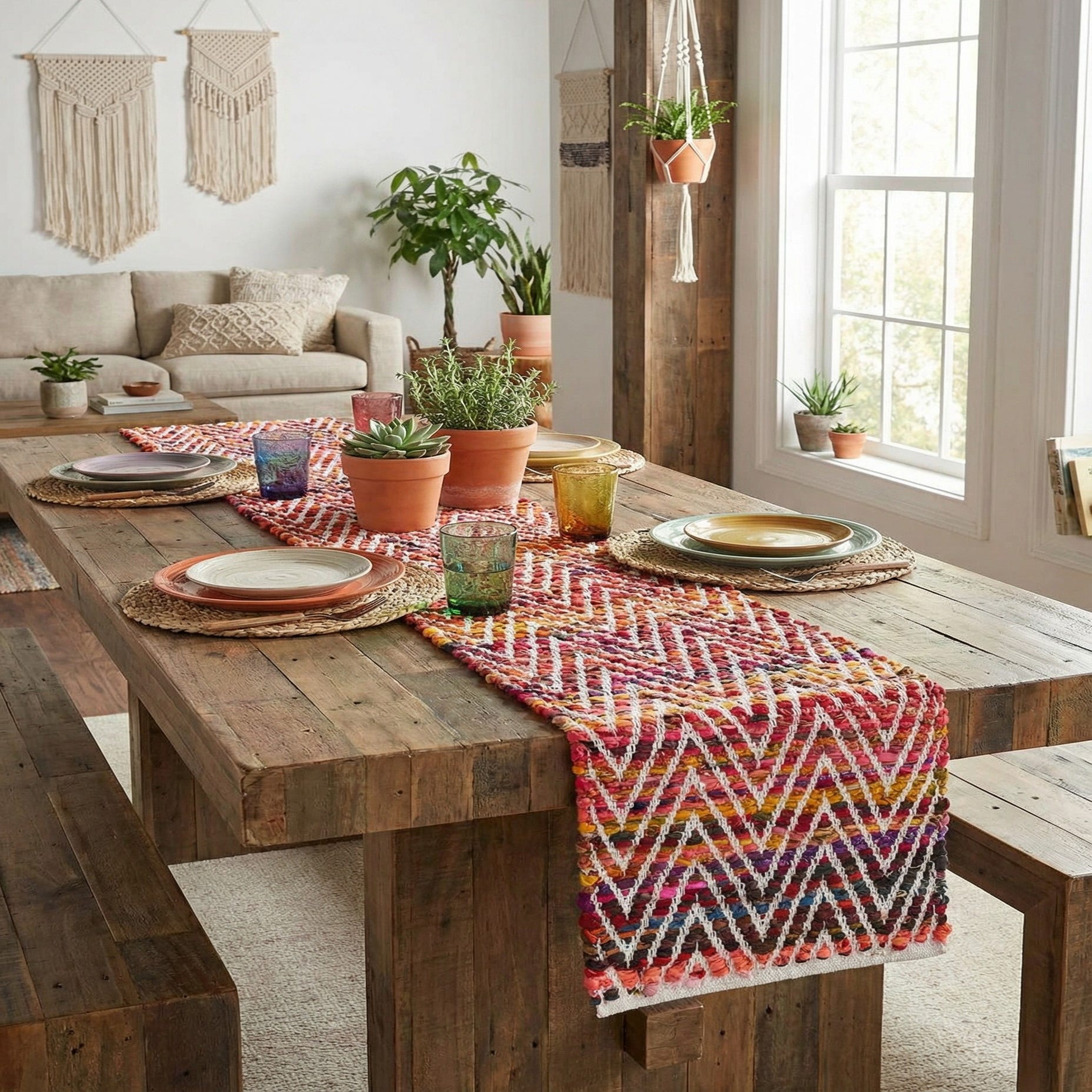 1' 2 x 10' Hand Woven Chindi Chevron Table Runner Rug