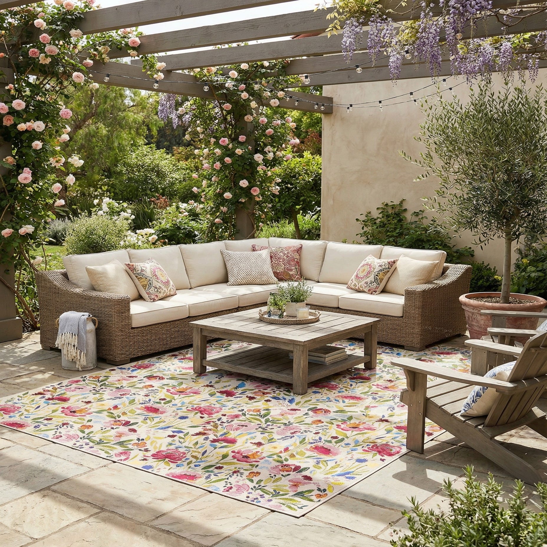 10' x 13' Washable Botanical Indoor / Outdoor Rug