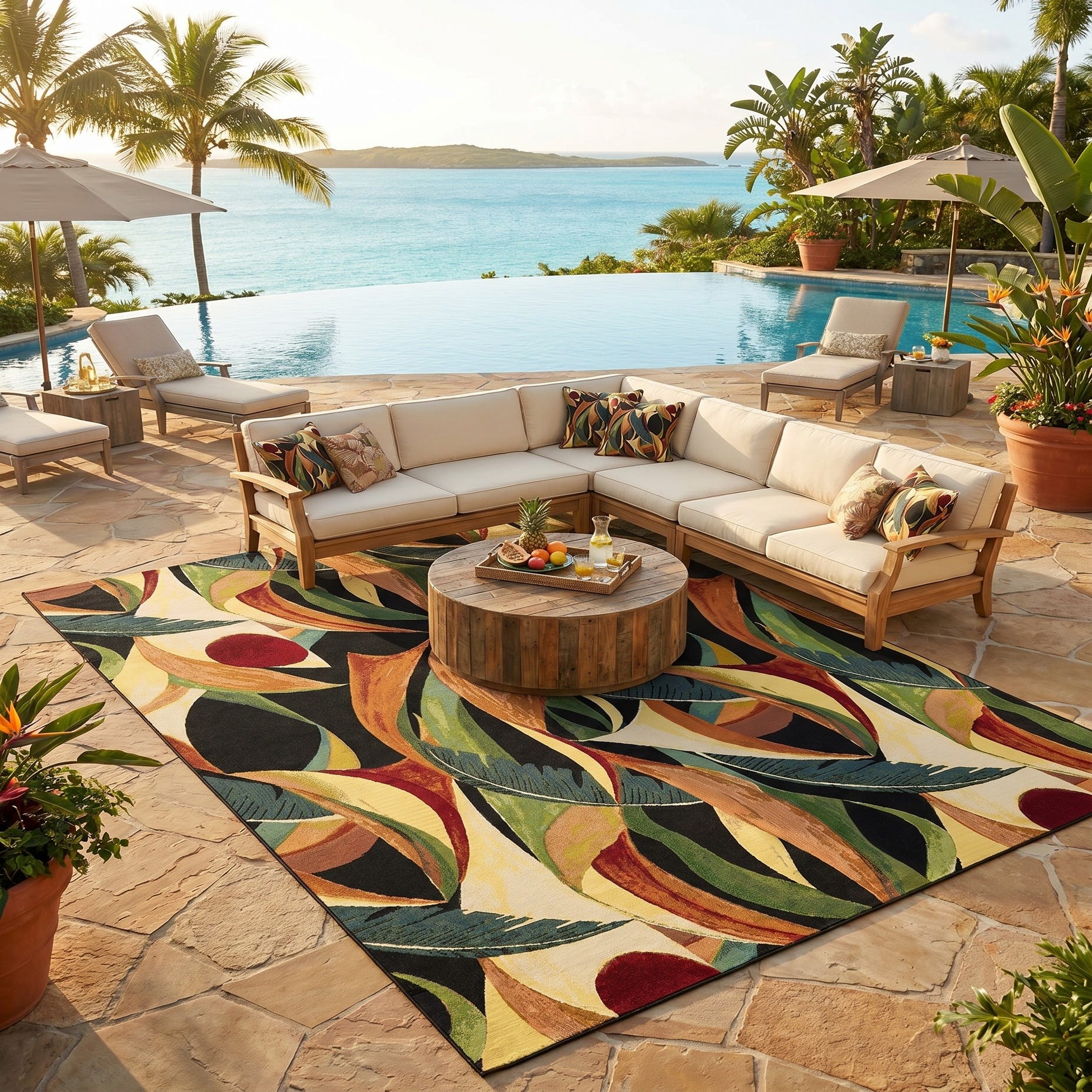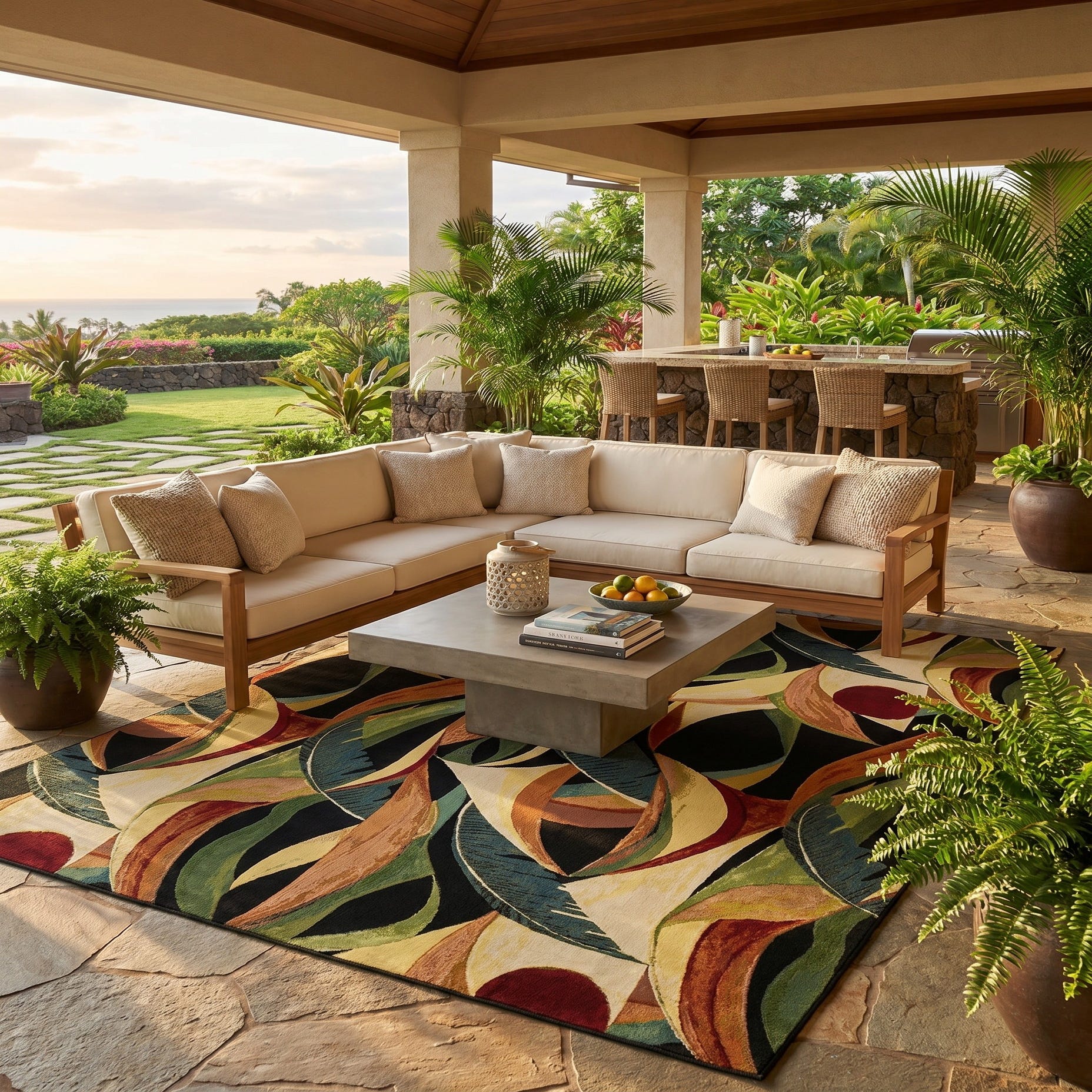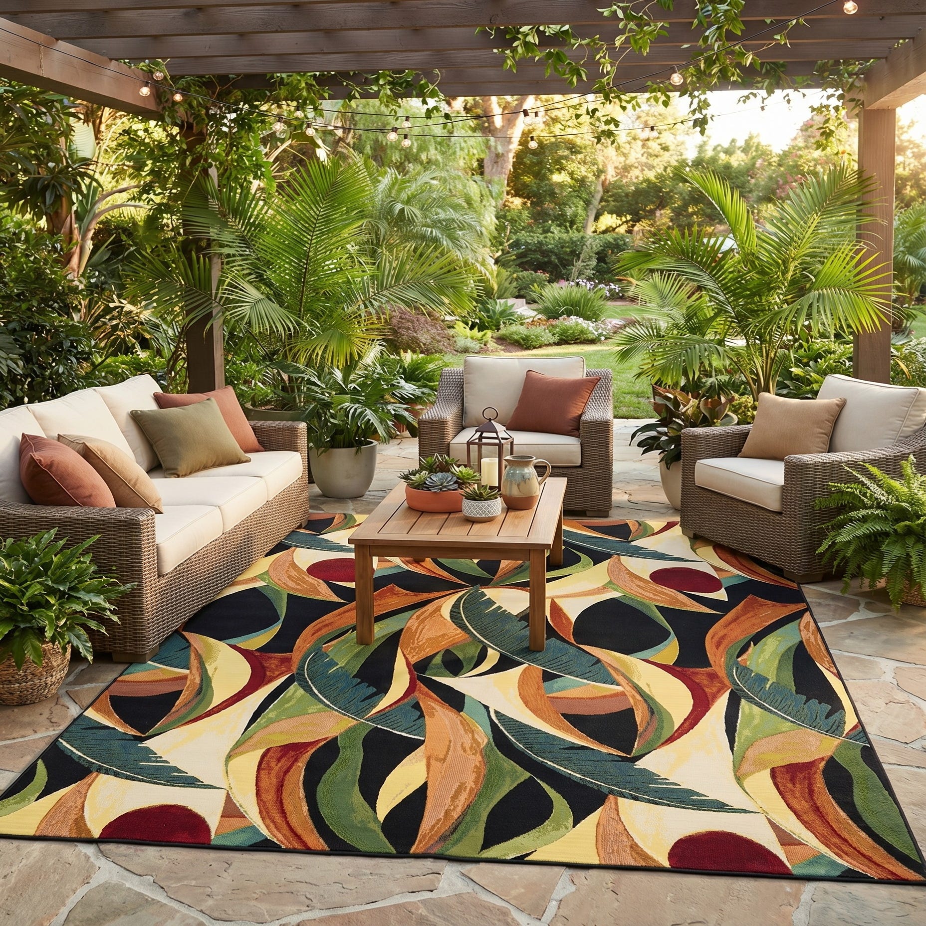 10' x 13' Easy-Clean Botanical Indoor / Outdoor Rug