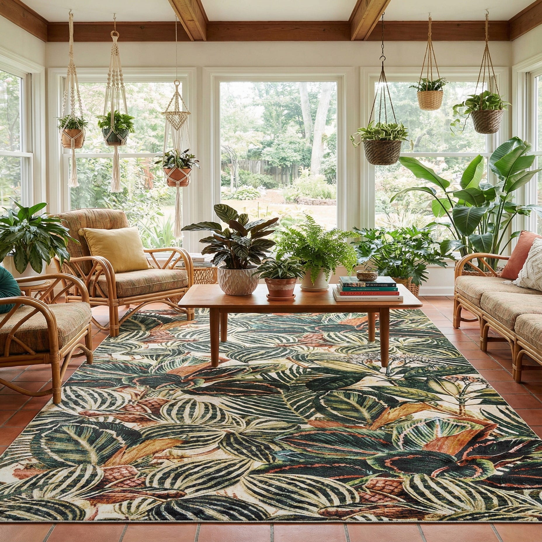 Primary color is Multi. Colors in this rug include: Multi, Beige, Brown, Green, Hunter Green, Ivory, Olive, Rust Red.
