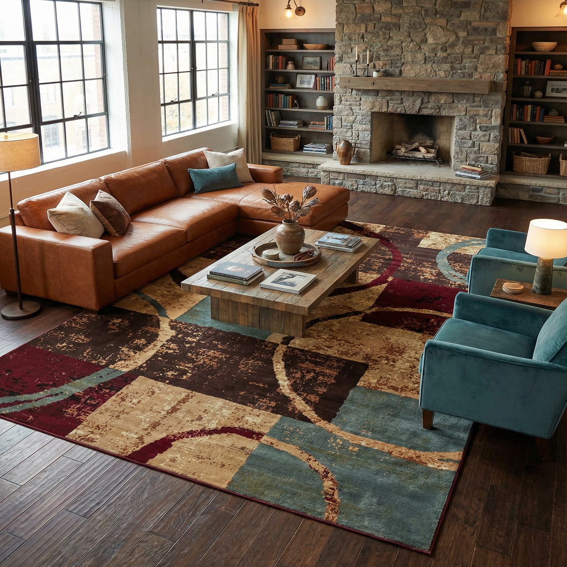 Primary color is Multi. Colors in this rug include: Multi, Beige, Black, Blue, Brown, Burgundy, Gray, Olive.