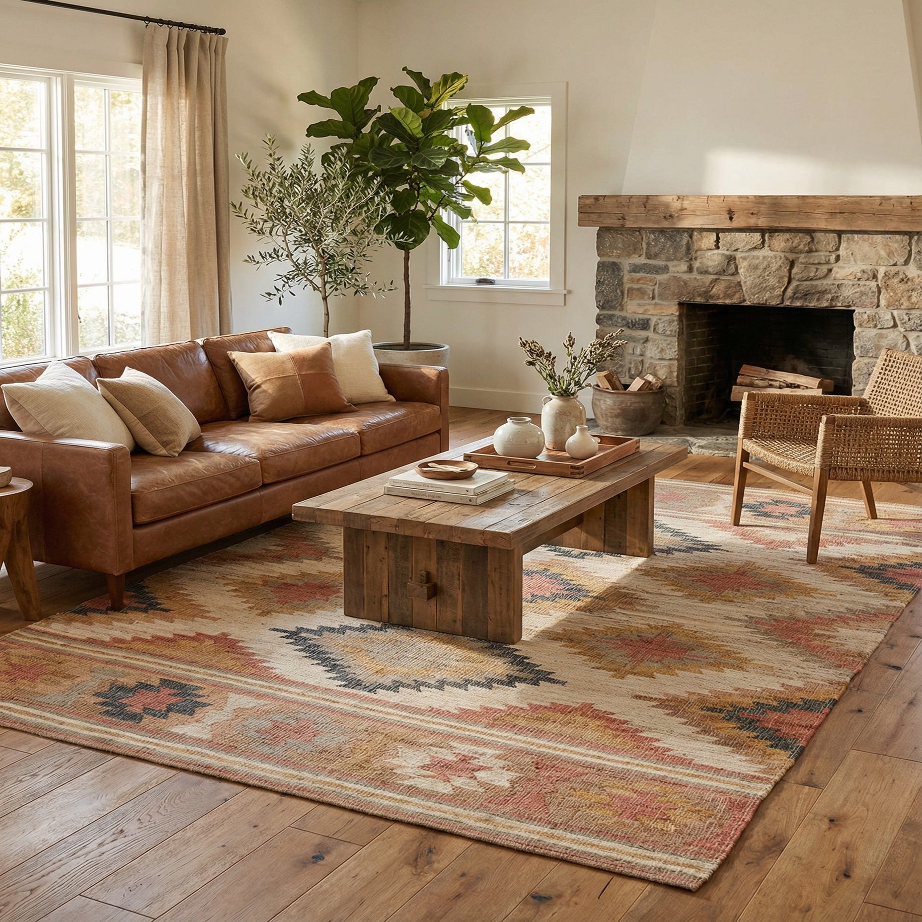 Primary color is Multi. Colors in this rug include: Multi, Beige, Black, Rust Red, Gold.