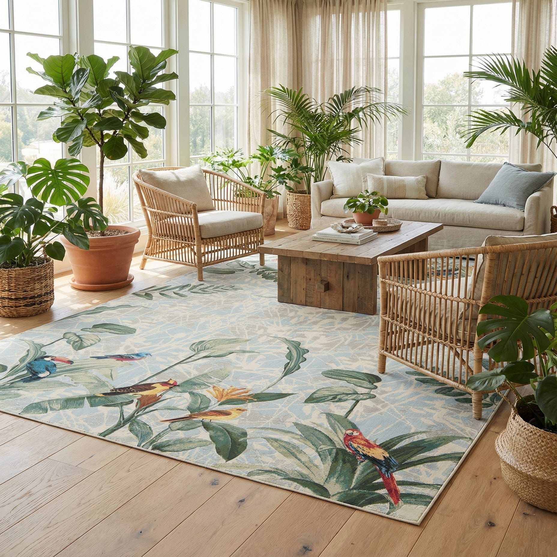Primary image 10' x 14' 2  Washable Botanical Indoor / Outdoor Rug
