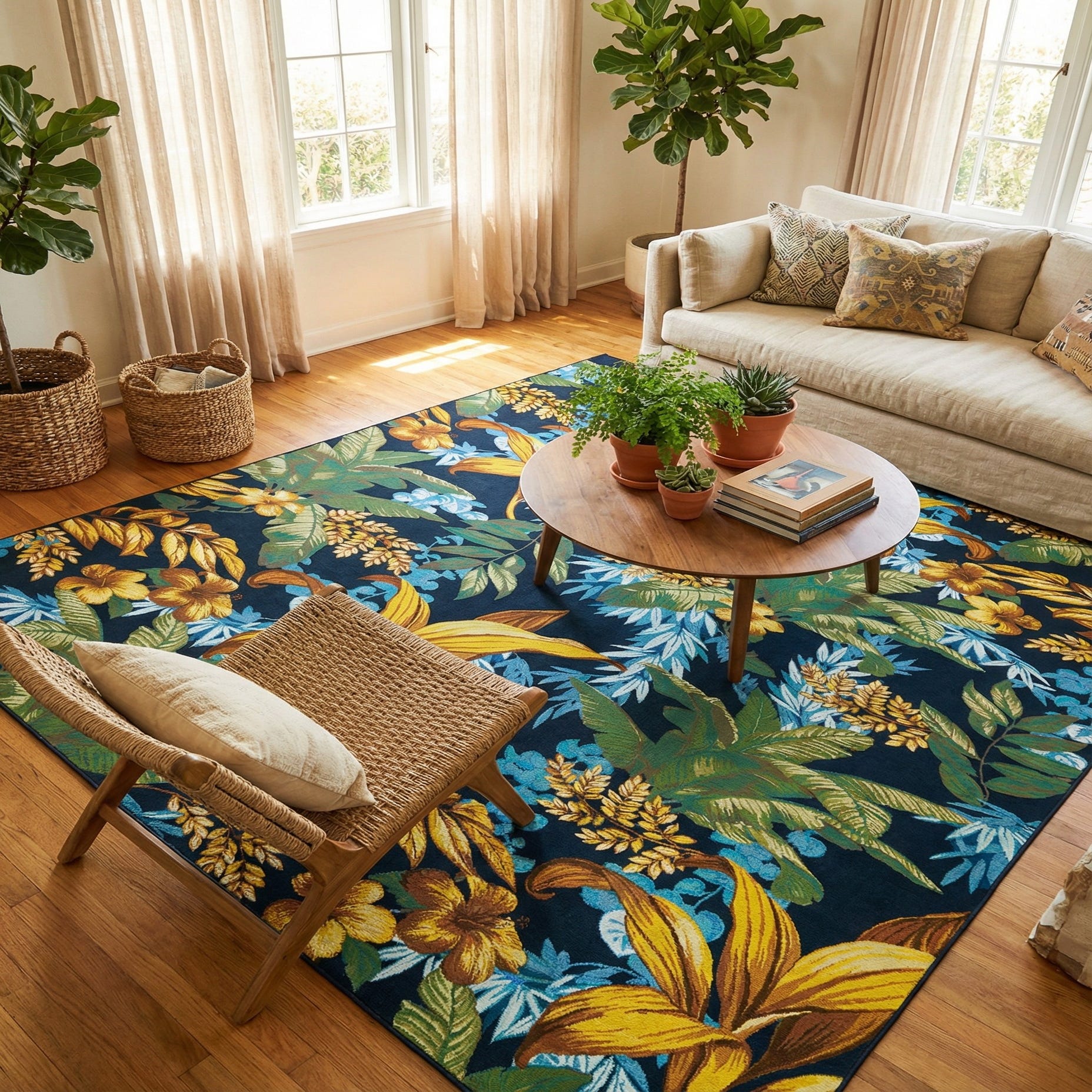 10' x 14' 2 Washable Botanical Indoor / Outdoor Rug