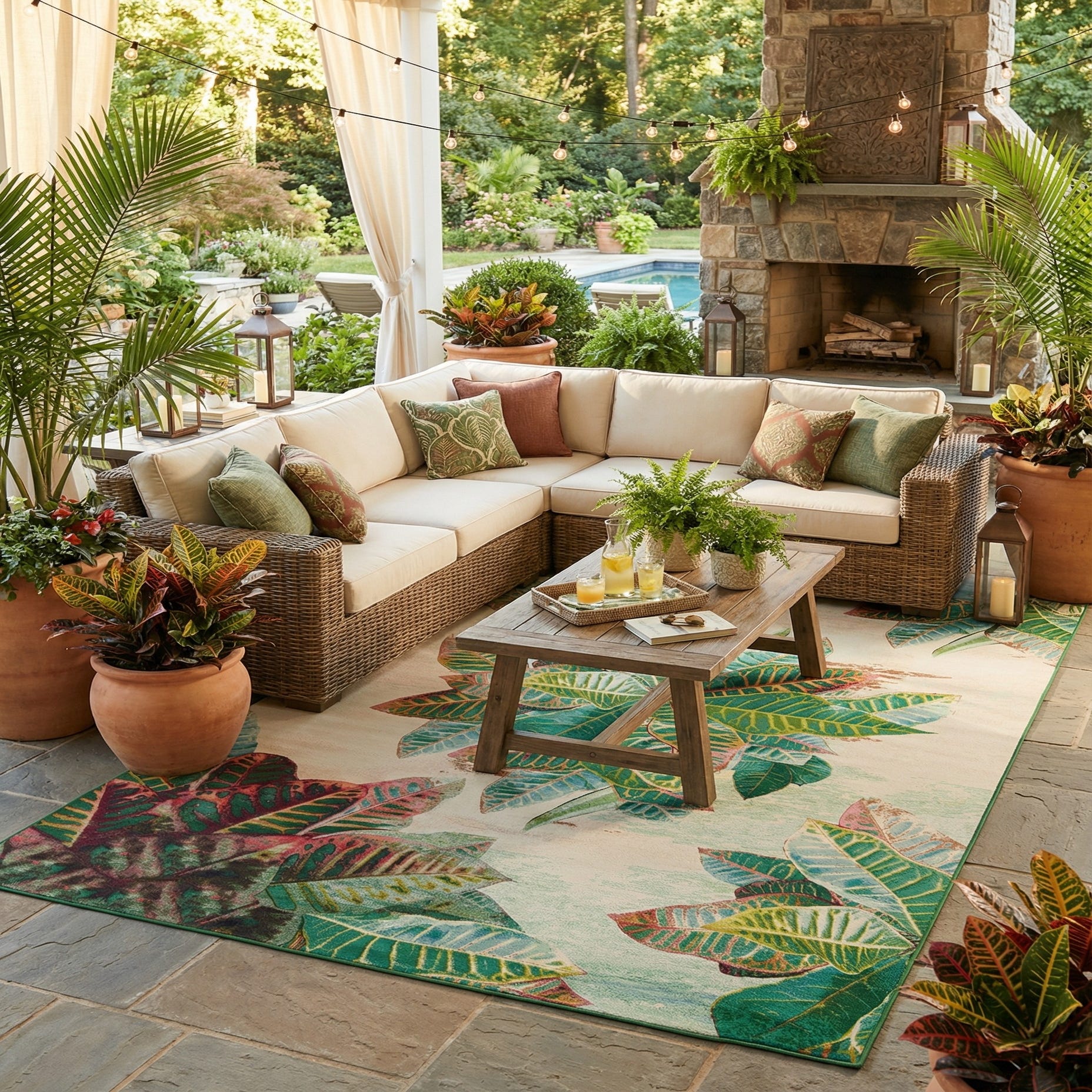Primary image 10' x 14' 2  Washable Botanical Indoor / Outdoor Rug