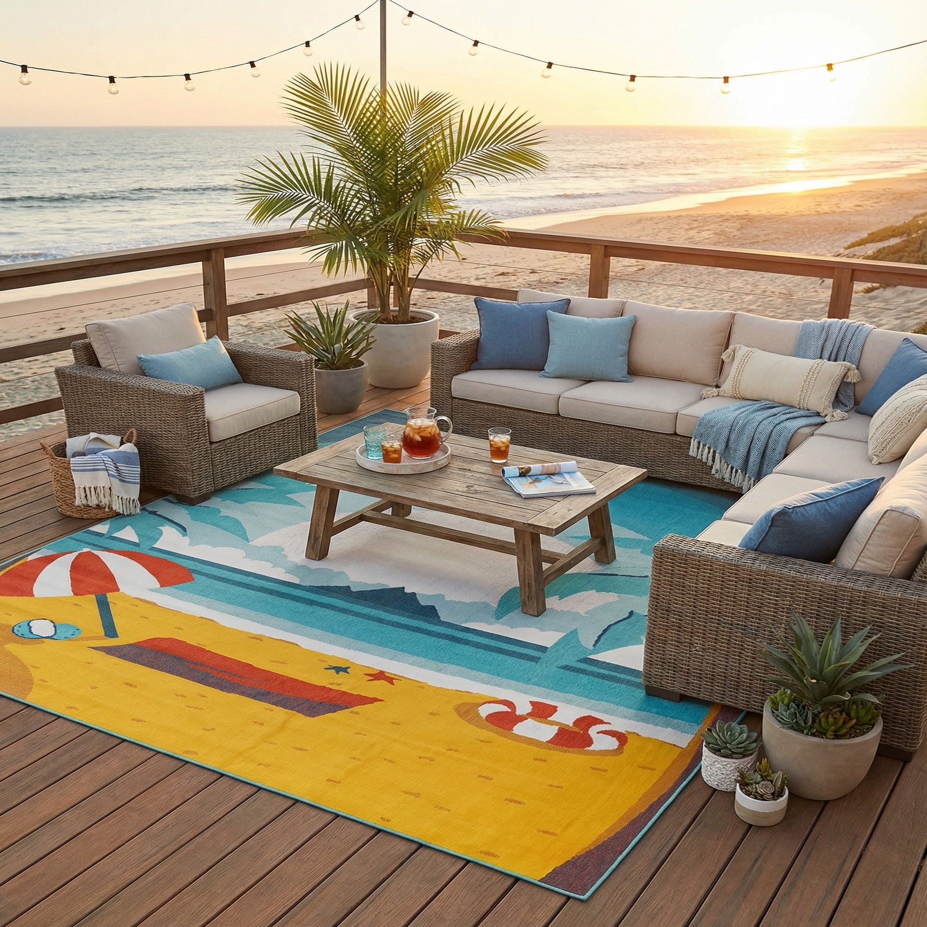 Primary image 10' x 14'  Washable Coastal Indoor / Outdoor Rug