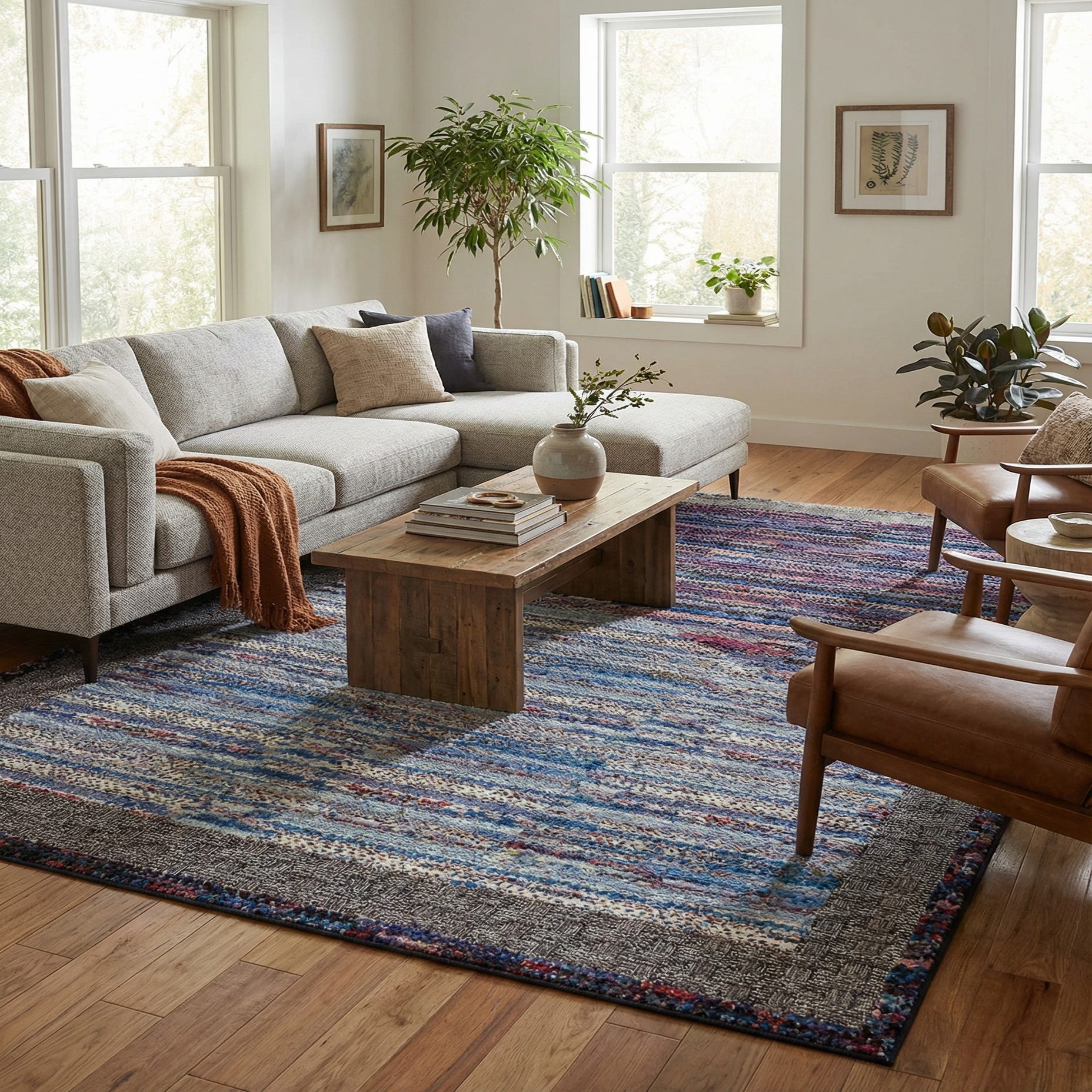 Primary color is Multi. Colors in this rug include: Multi, Black, Blue, Ivory, Red, Yellow, Pink, Violet, Green.