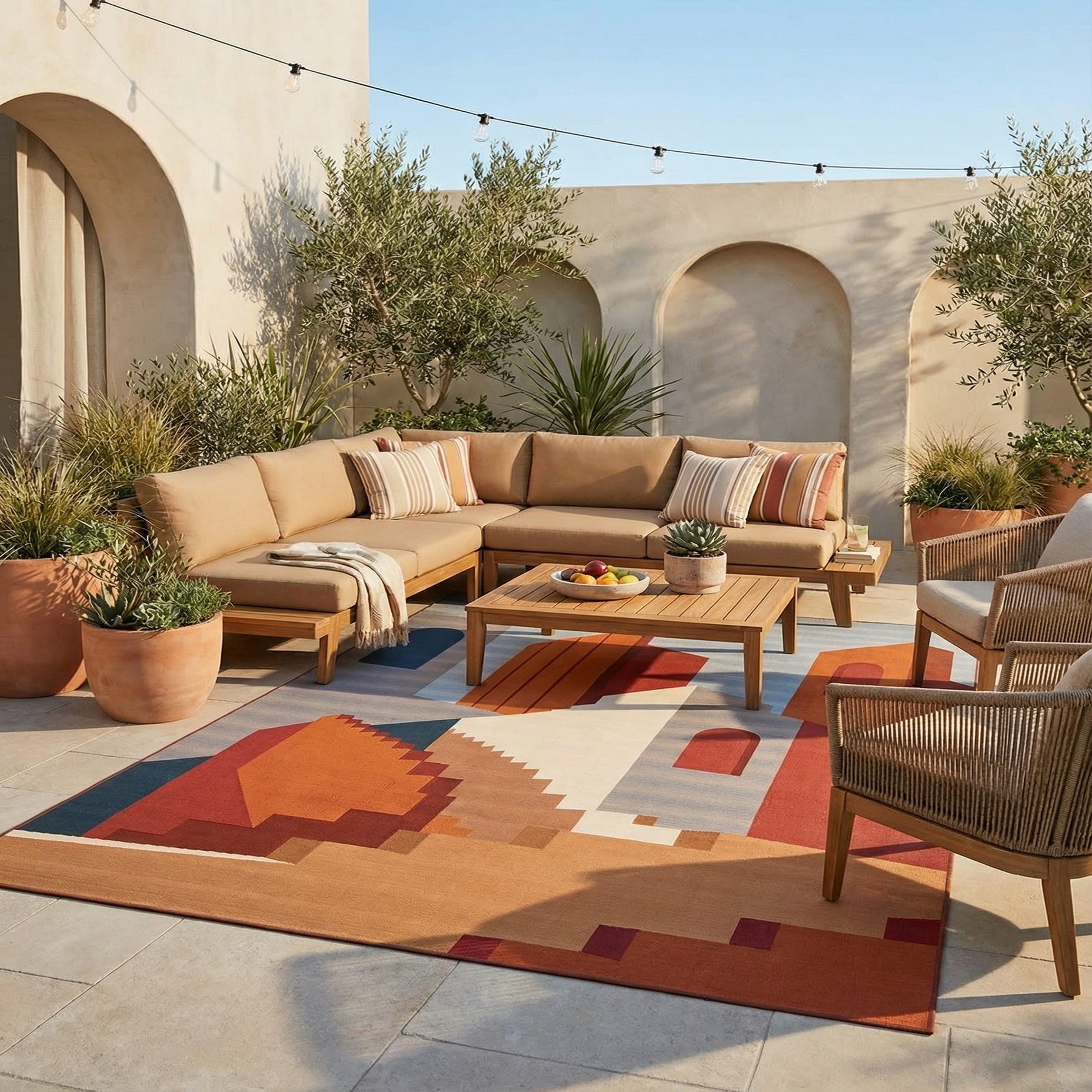Primary image 10' x 14'  Washable Modern Indoor / Outdoor Rug