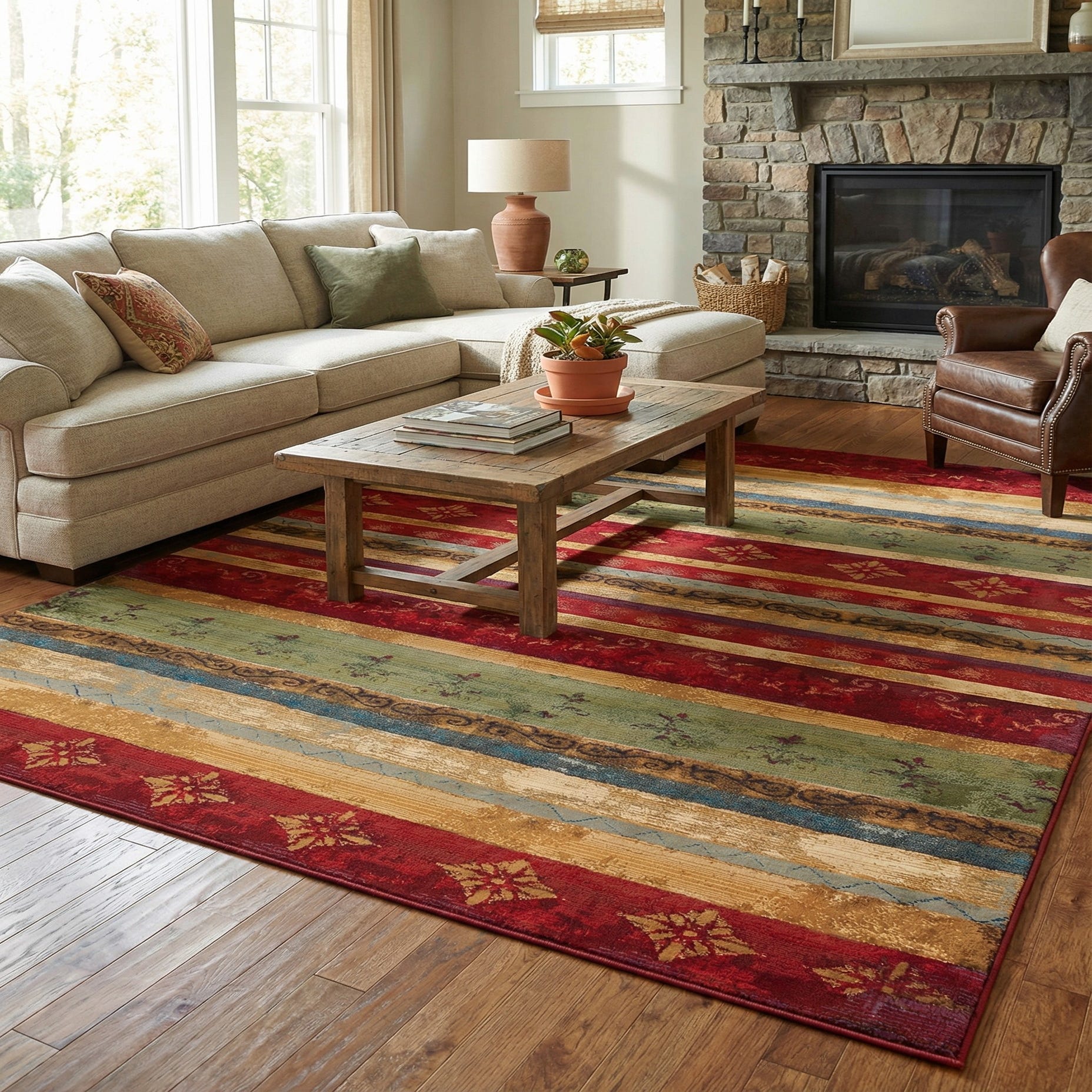 Primary color is Multi. Colors in this rug include: Multi, Beige, Blue, Brown, Cream, Gold, Green, Navy Blue, Red.