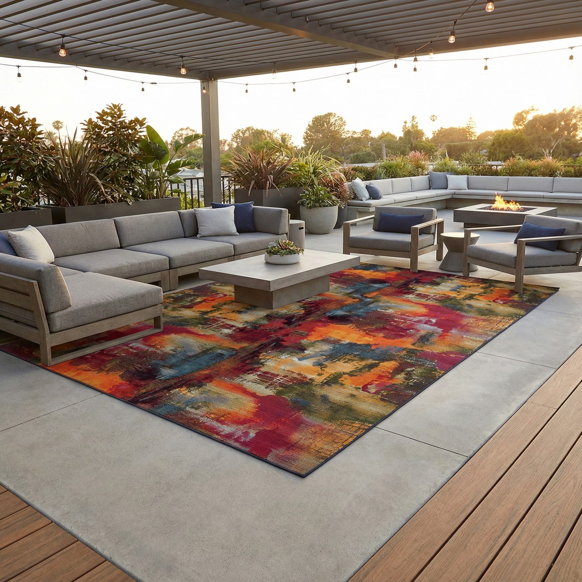 Primary image 10' x 14'  Washable Modern Indoor / Outdoor Rug
