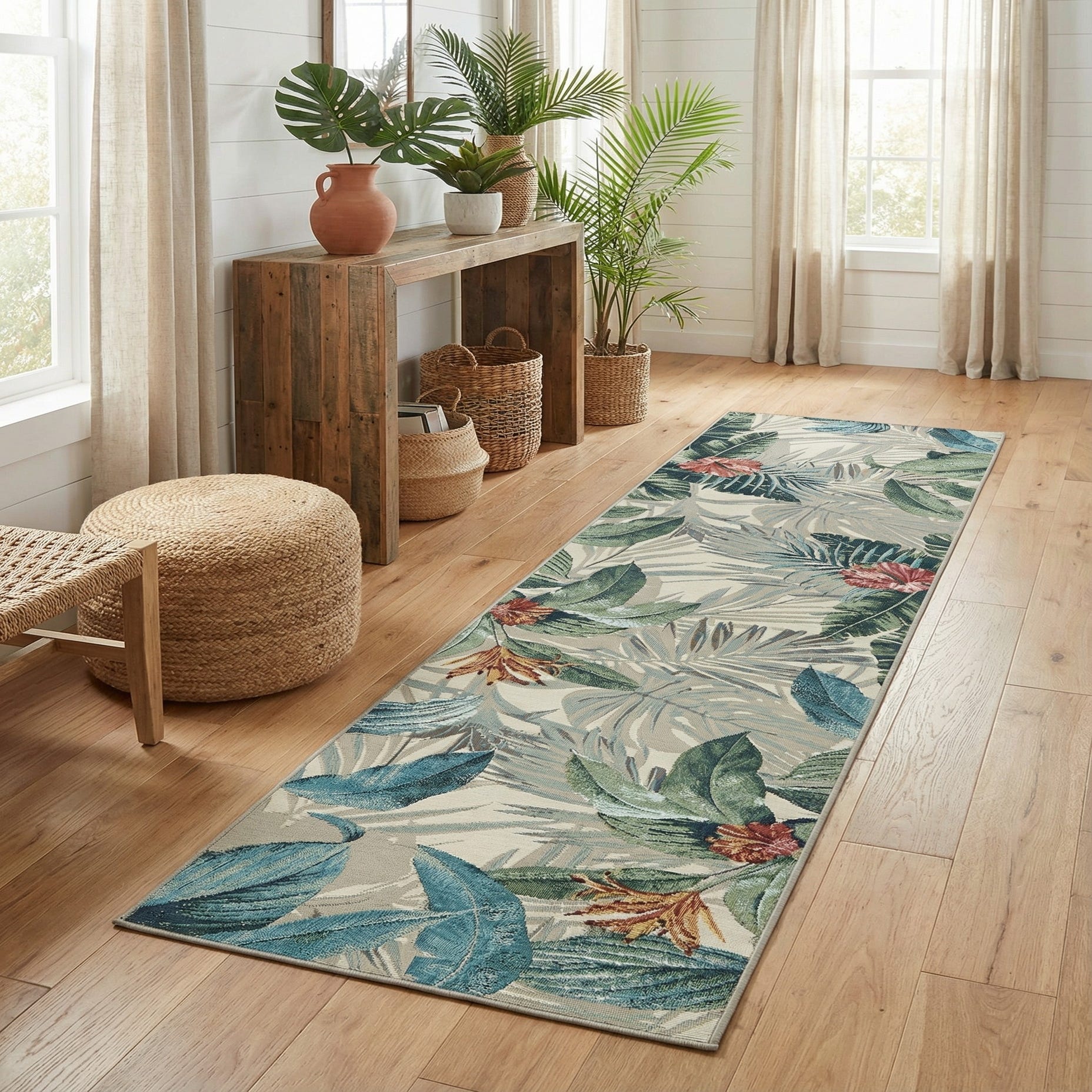2' 7 x 11' Washable Botanical Indoor / Outdoor Runner Rug