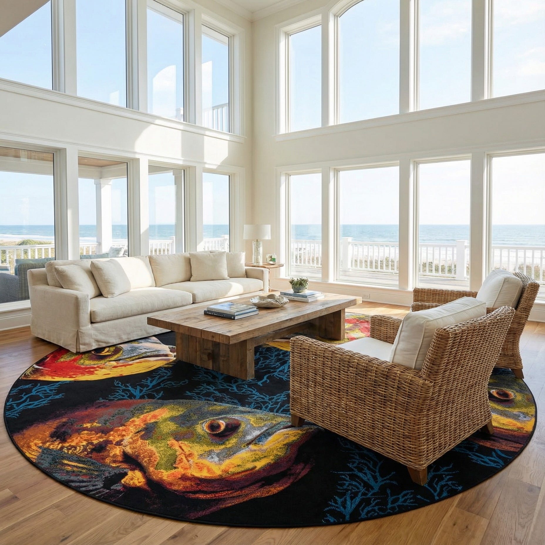 Primary image 12' x 12'  Washable Coastal Indoor / Outdoor Round Rug
