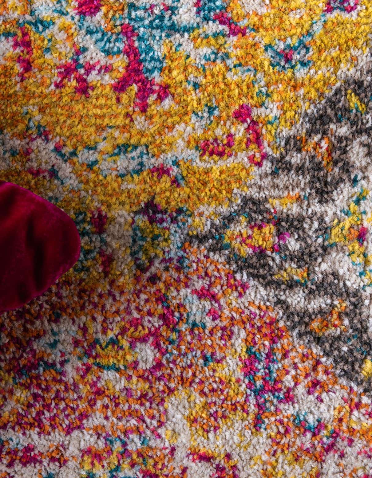 Primary color is Multi. Colors in this rug include: Multi, Blue, Gold, Gray, Green, Ivory, Navy Blue, Peach, Purple, Red, Yellow, Pink.
