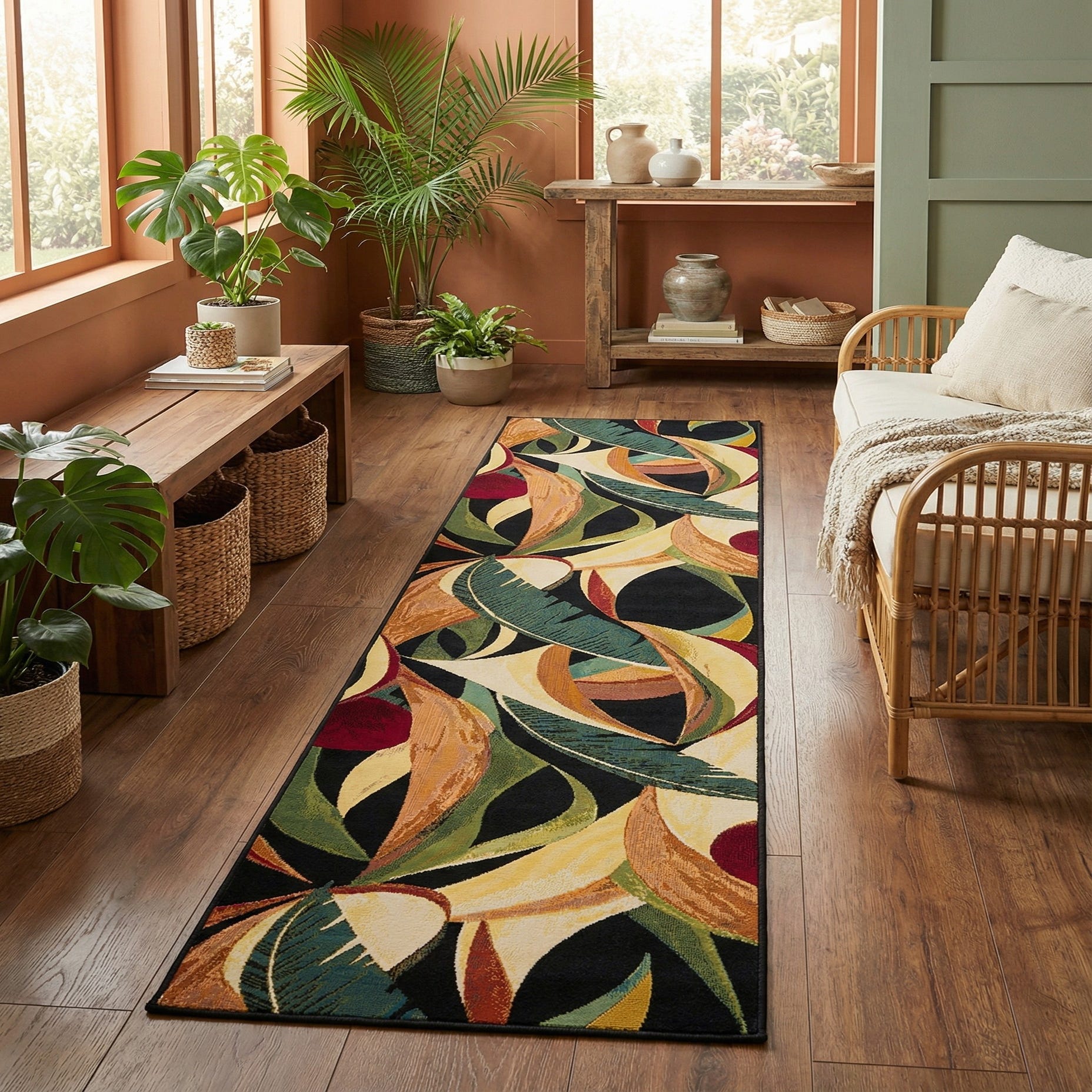 2' 7 x 12' Washable Botanical Indoor / Outdoor Runner Rug