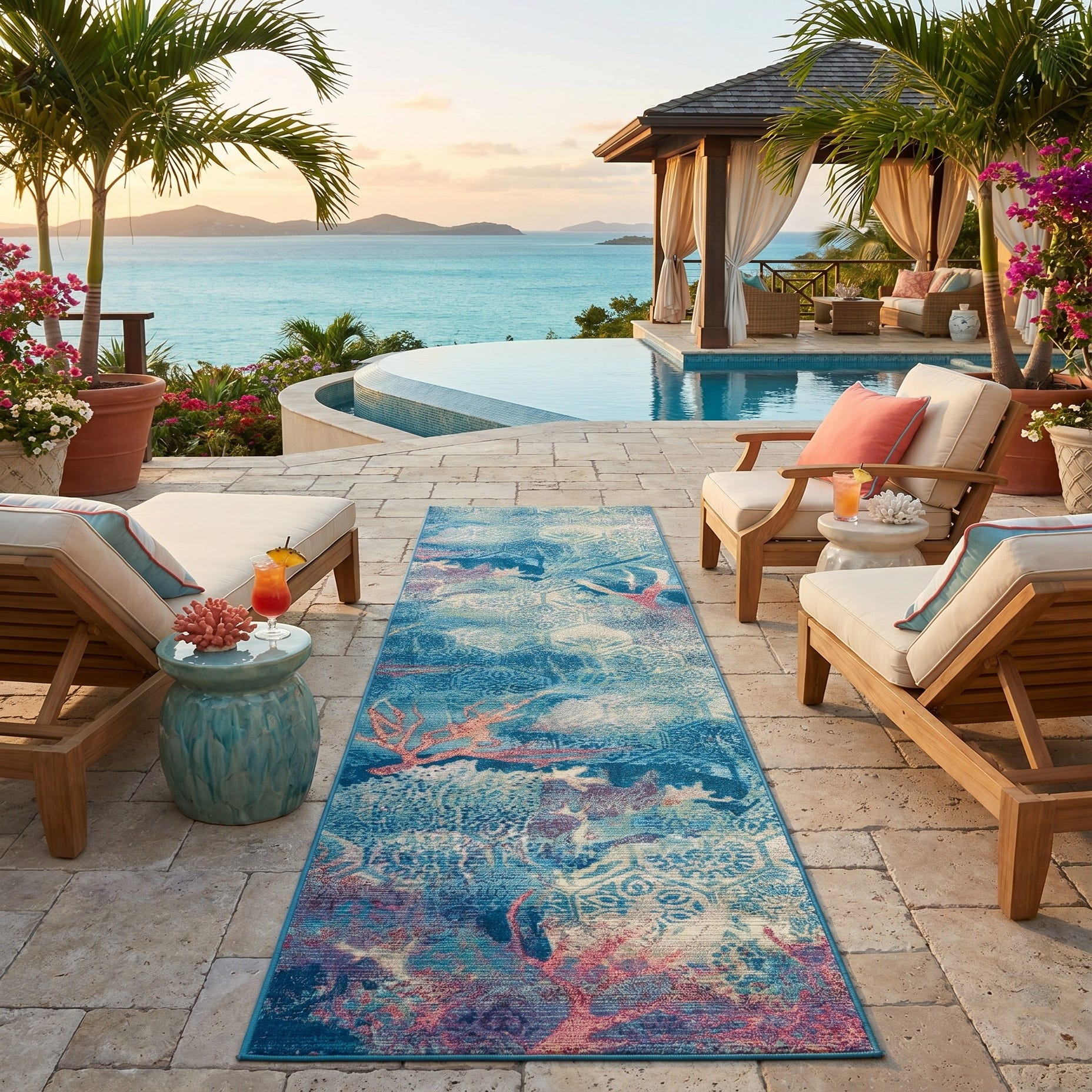 2' 7 x 12' Easy-Clean Coastal Indoor / Outdoor Runner Rug