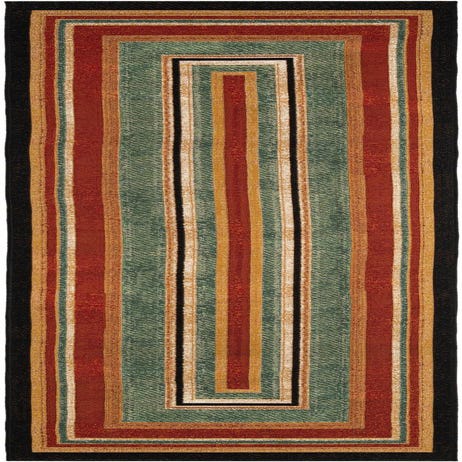 Primary color is Multi. Colors in this rug include: Multi, Black, Brown, Terracotta, Green, Ivory, Gold.