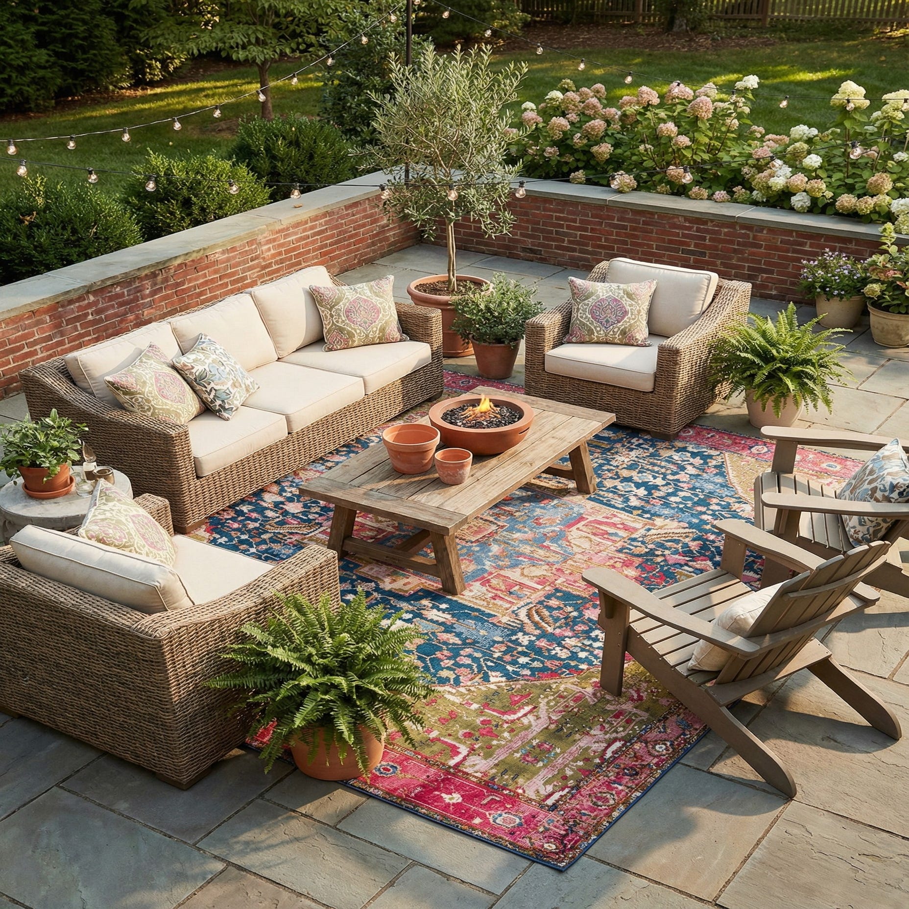 12' x 12' Washable Traditional Indoor / Outdoor Square Rug