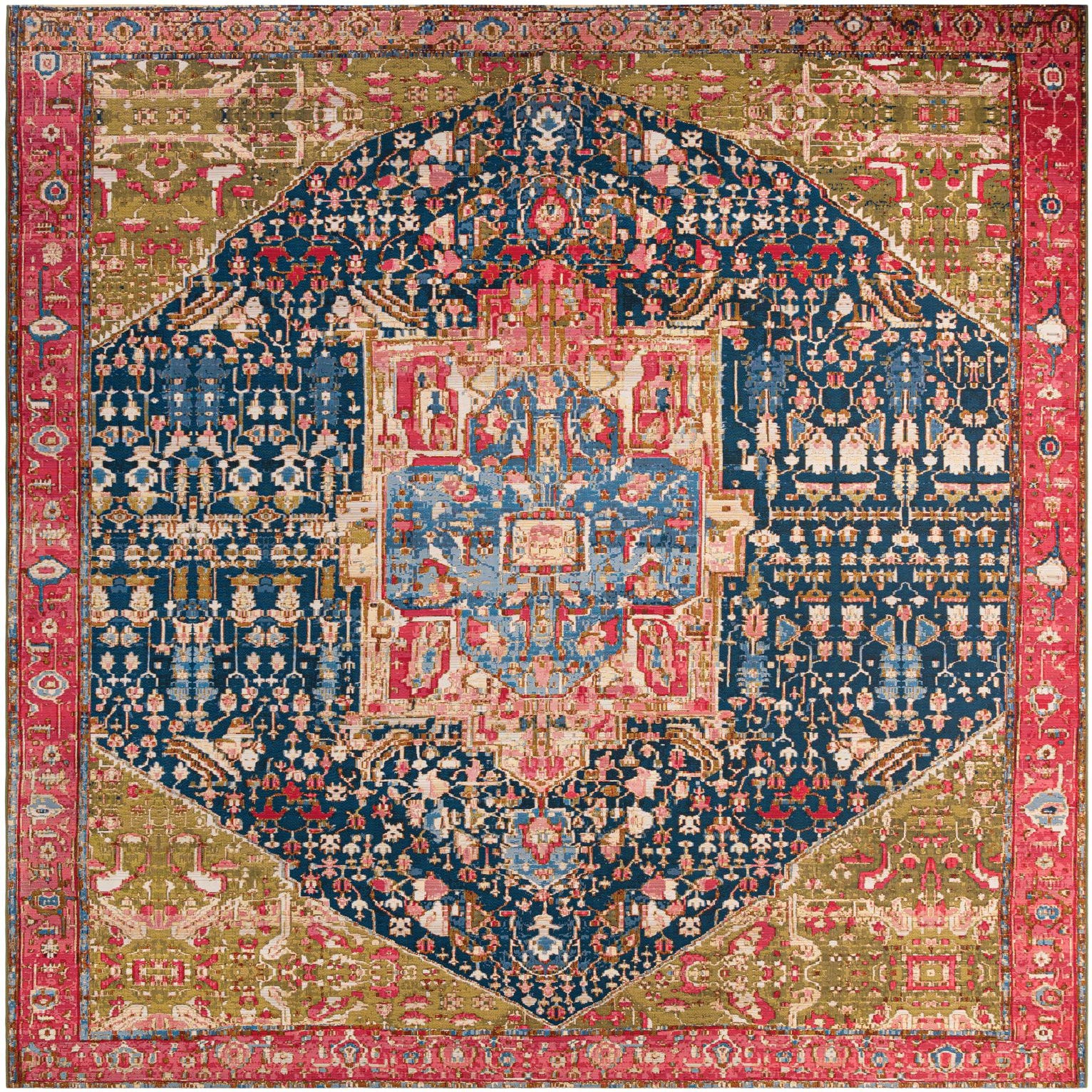 Primary color is Multi. Colors in this rug include: Multi, Blue, Ivory, Green, Light Blue, Light Brown, Light Green, Navy Blue, Yellow.