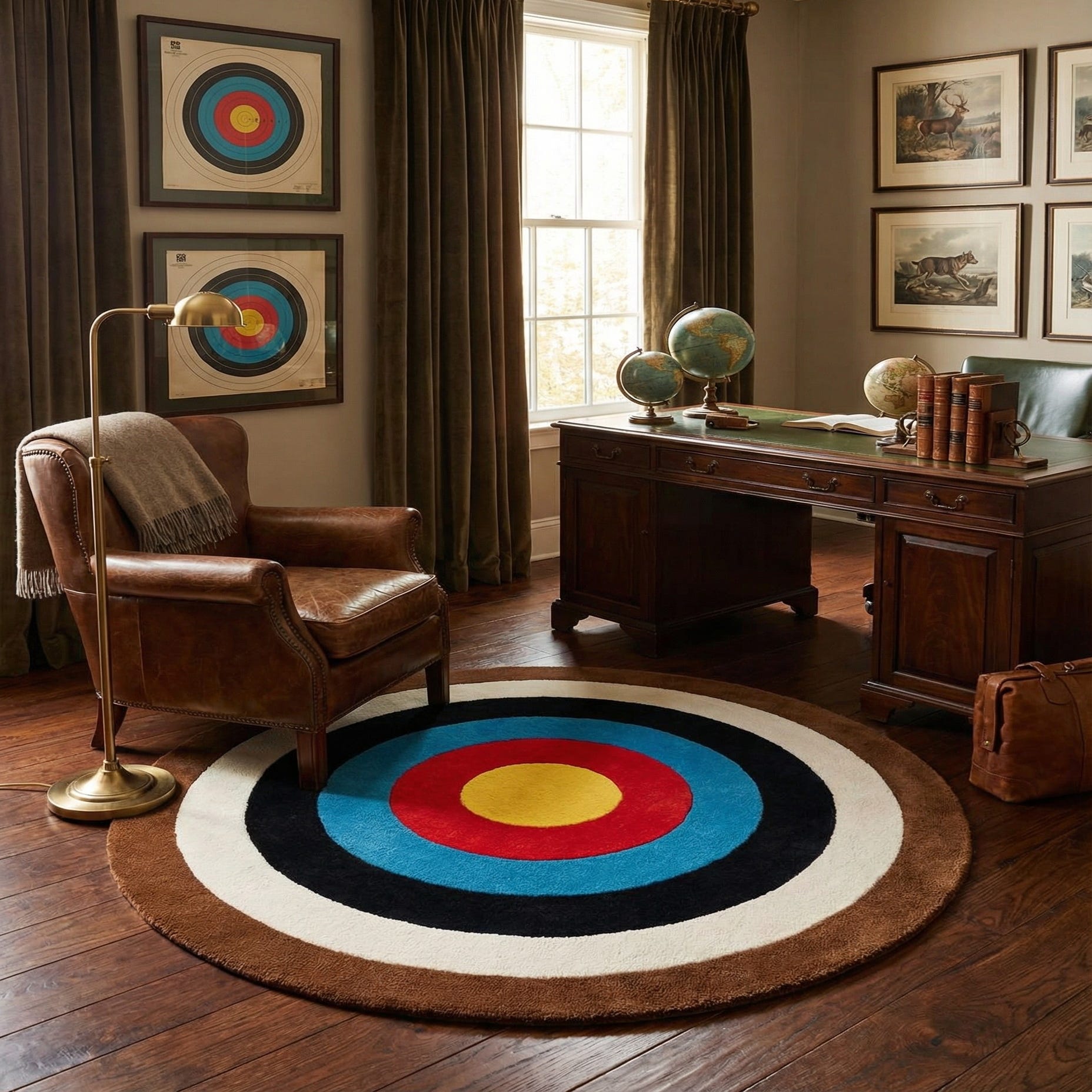 Detail image of 2' x 2'  Hand Knotted WM Brown Target Round Rug