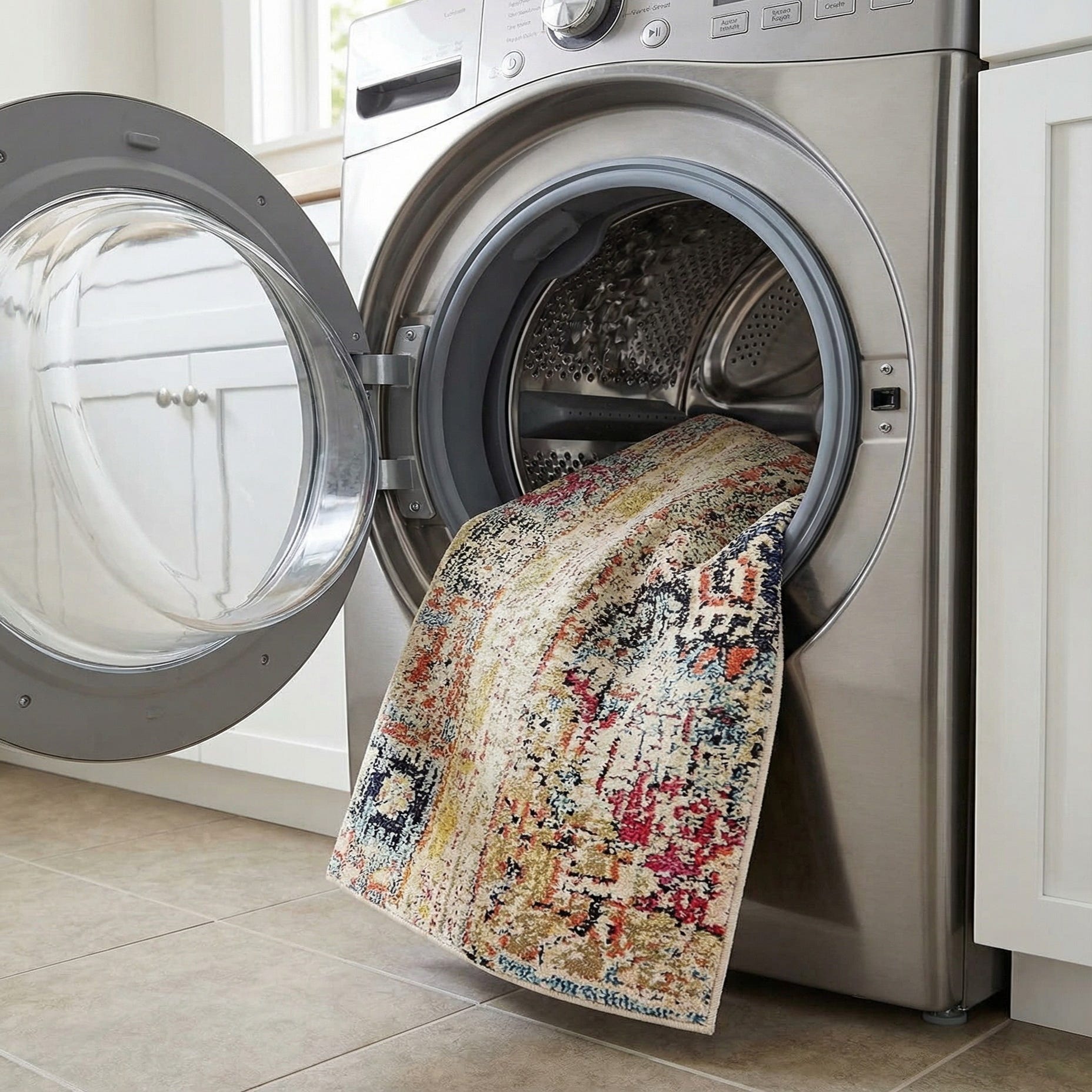 Primary color is Multi. Colors in this rug include: Multi, Blue, Gold, Green, Navy Blue, Olive, Orange, Purple, Red.