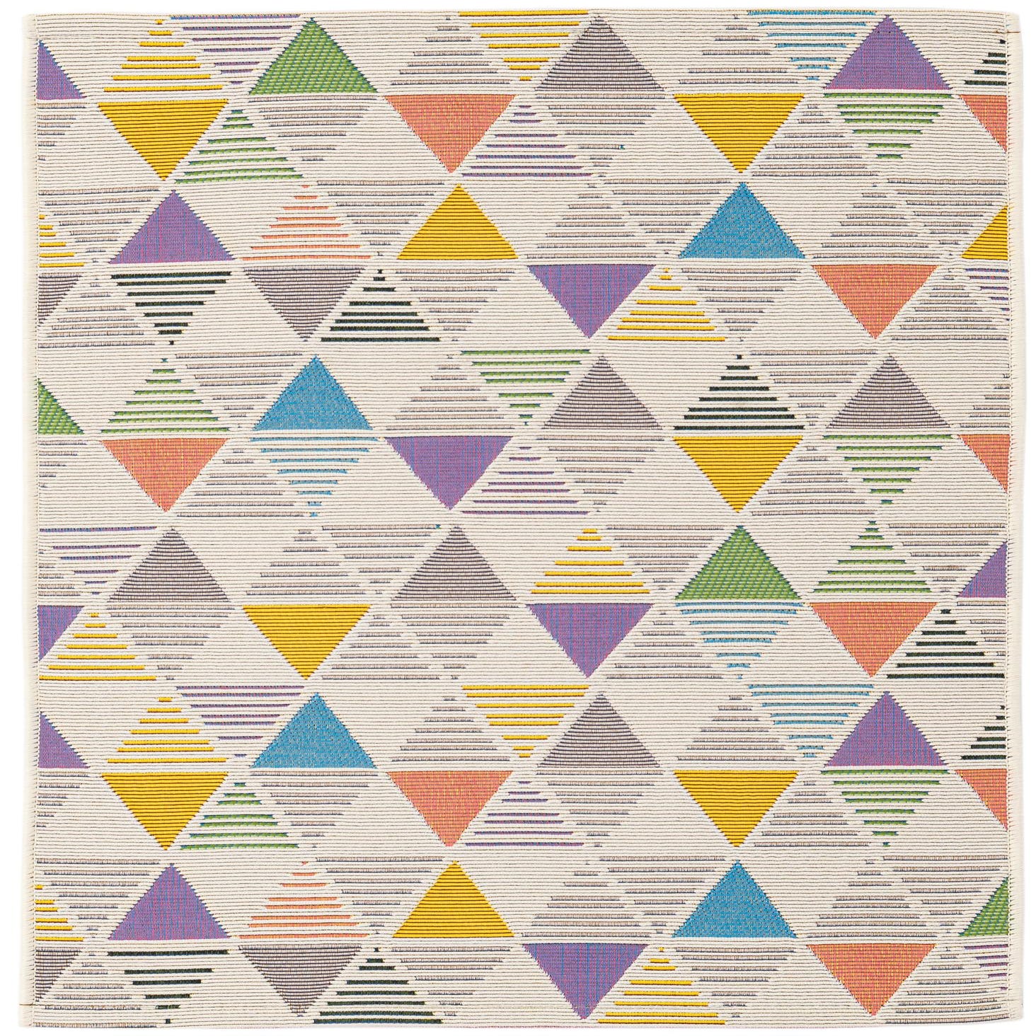 Primary color is Multi. Colors in this rug include: Multi, Gray, Green, Ivory, Yellow, Violet, Pink.
