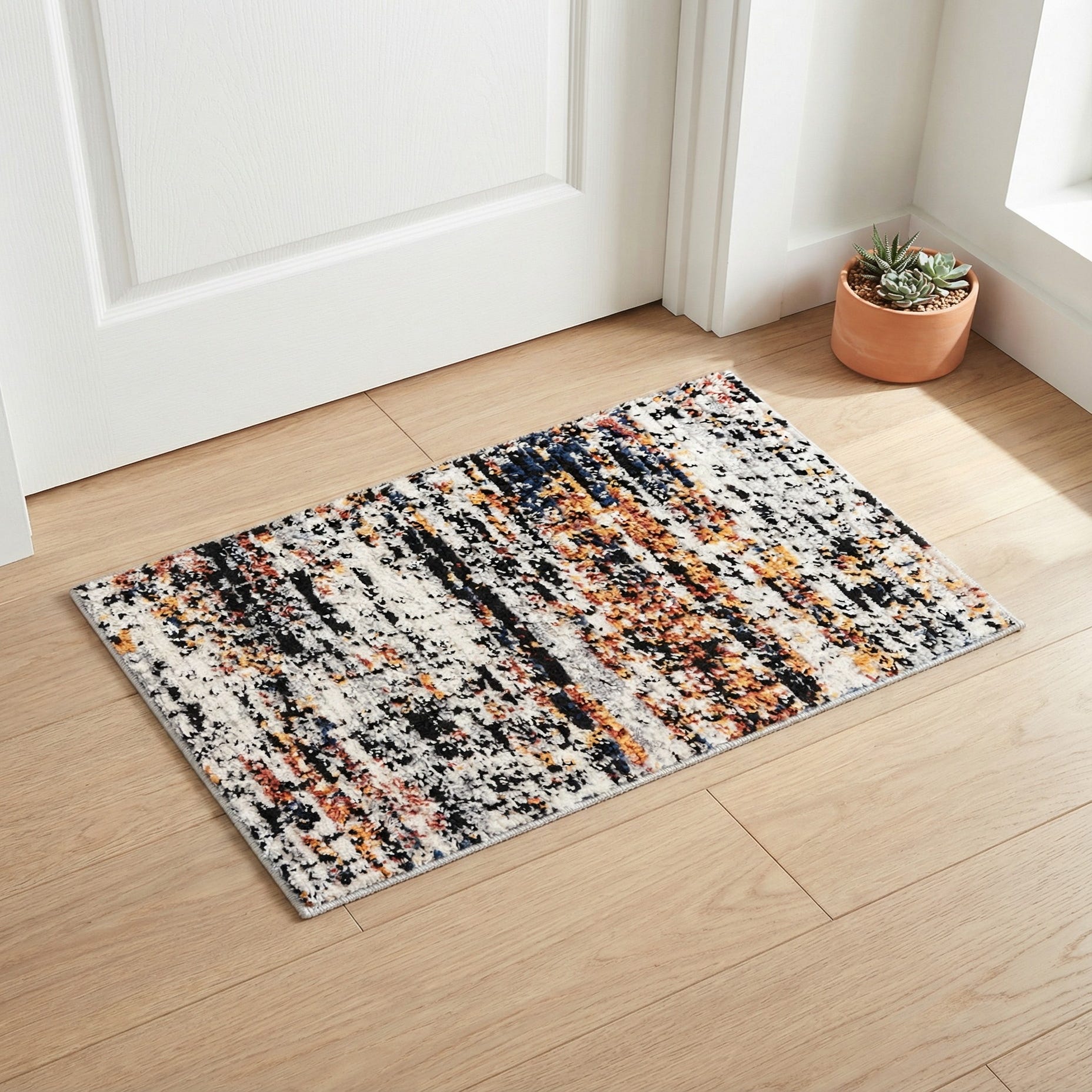 Primary color is Multi. Colors in this rug include: Multi, Beige, Black, Blue, Gray, Ivory, Rust Red.