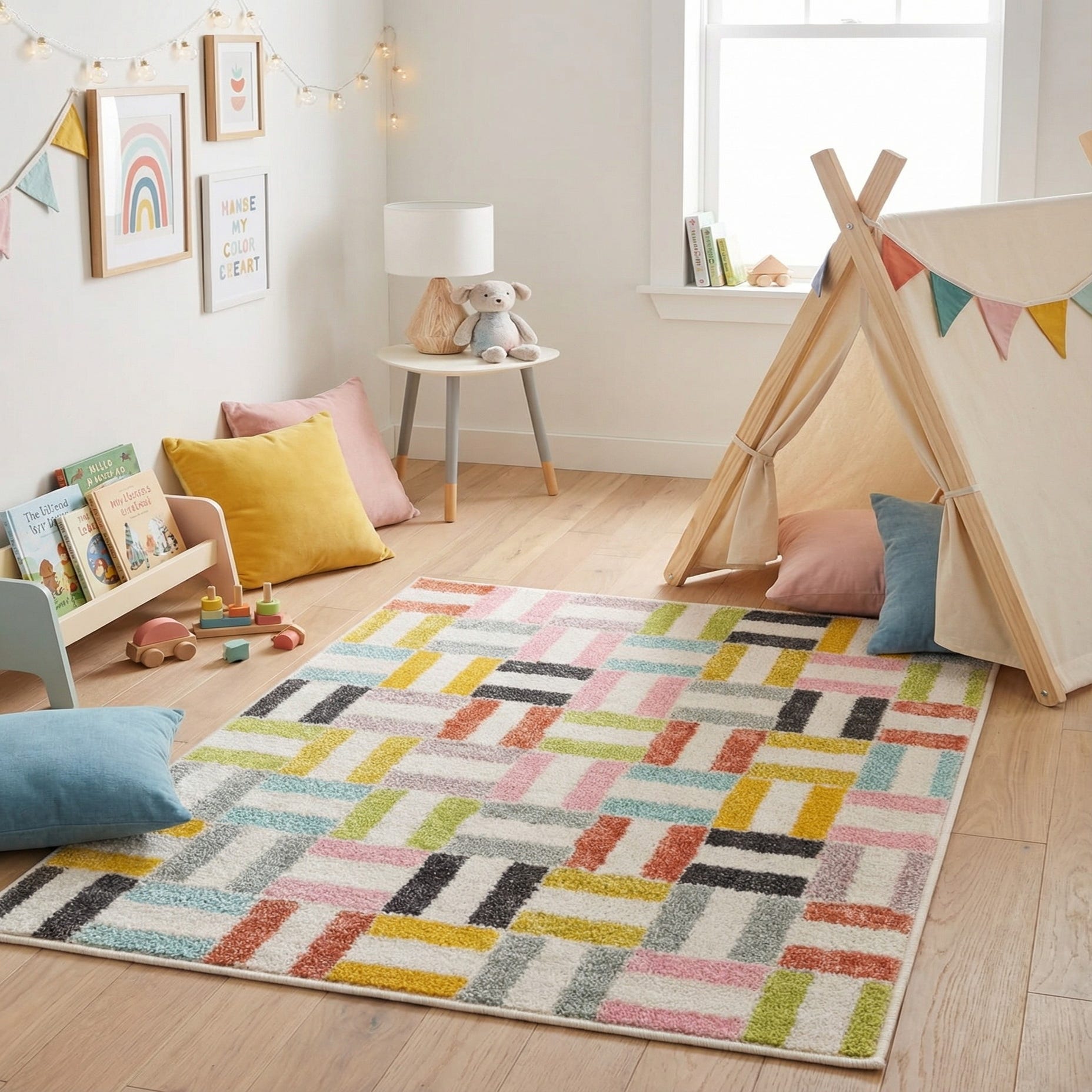 2' 2 x 3' Checkered Whimsy Kids Rug