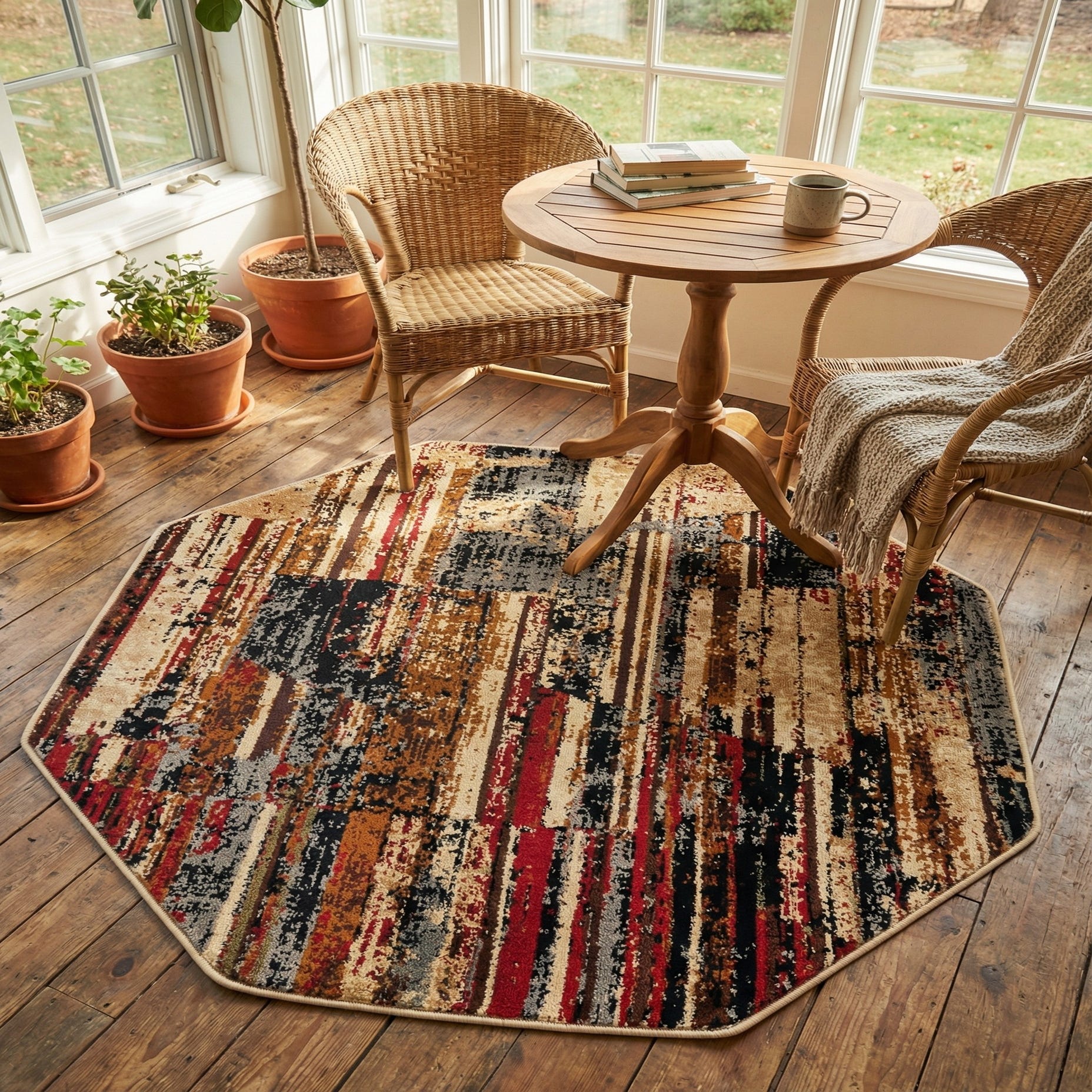 Primary color is Multi. Colors in this rug include: Multi, Beige, Black, Brown, Gold, Gray, Red.